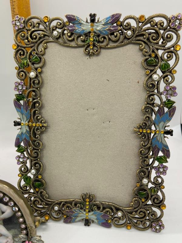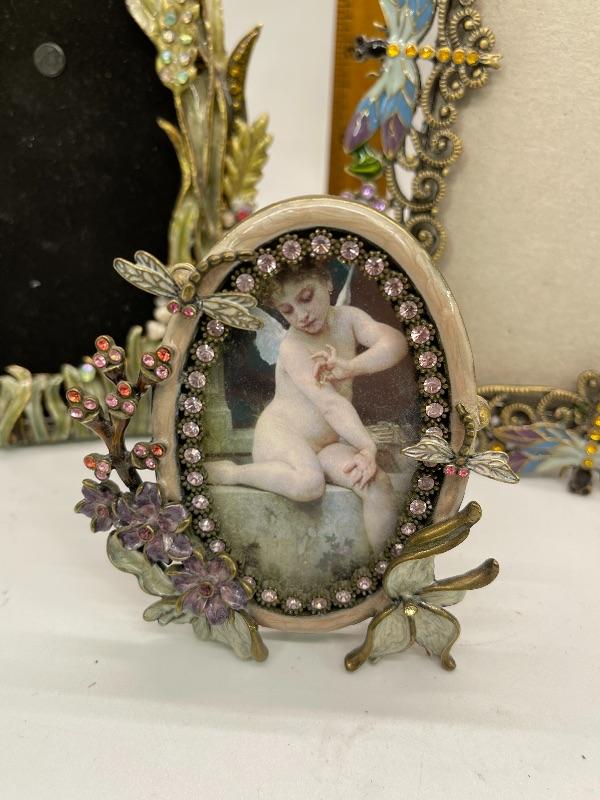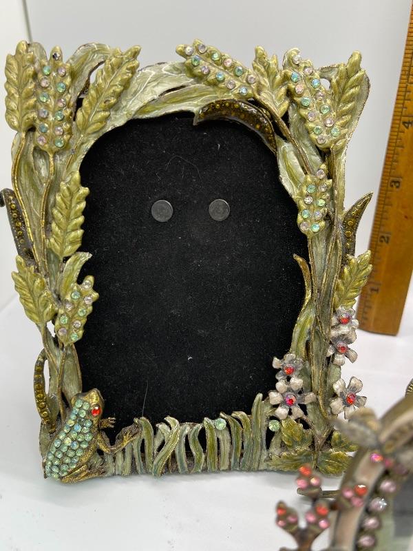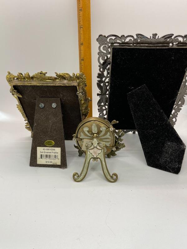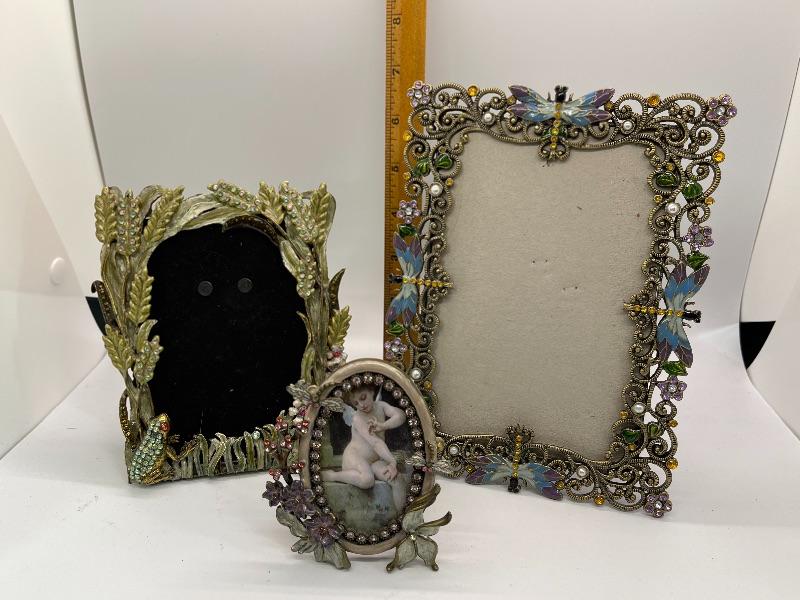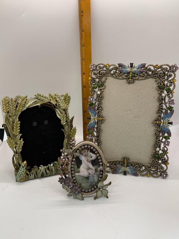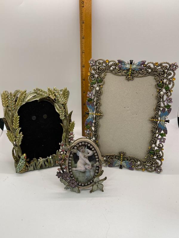Set of 3 decorative picture frames. Metal frames with rhinestone accents. Different sizes, 4x6 and smaller. #020-499a25
