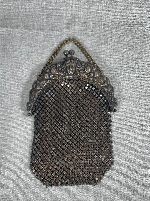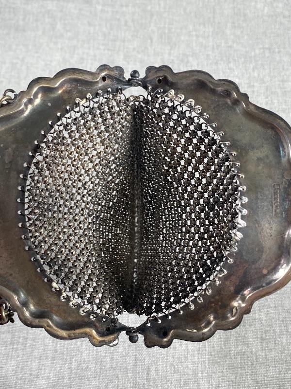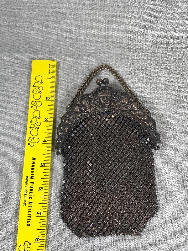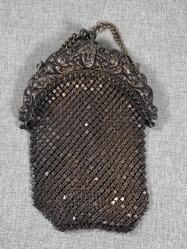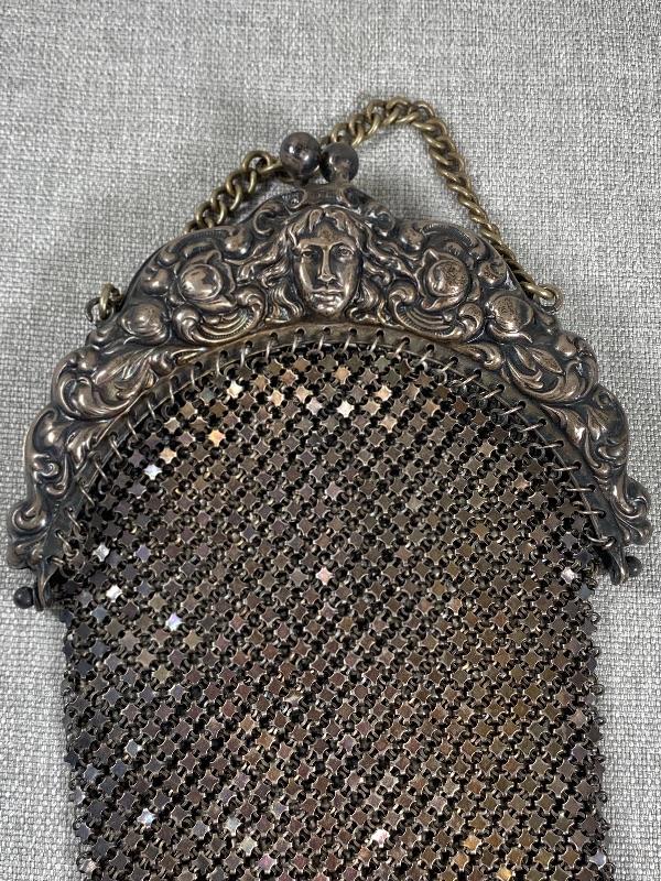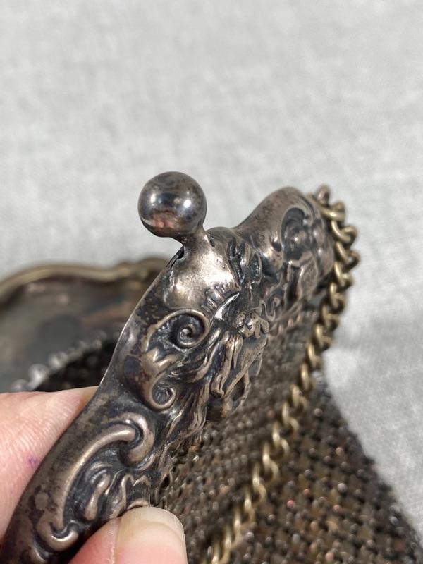 Antique Art Nouveau Chainmail Mesh Sterling Silver Flapper Purse Handbag