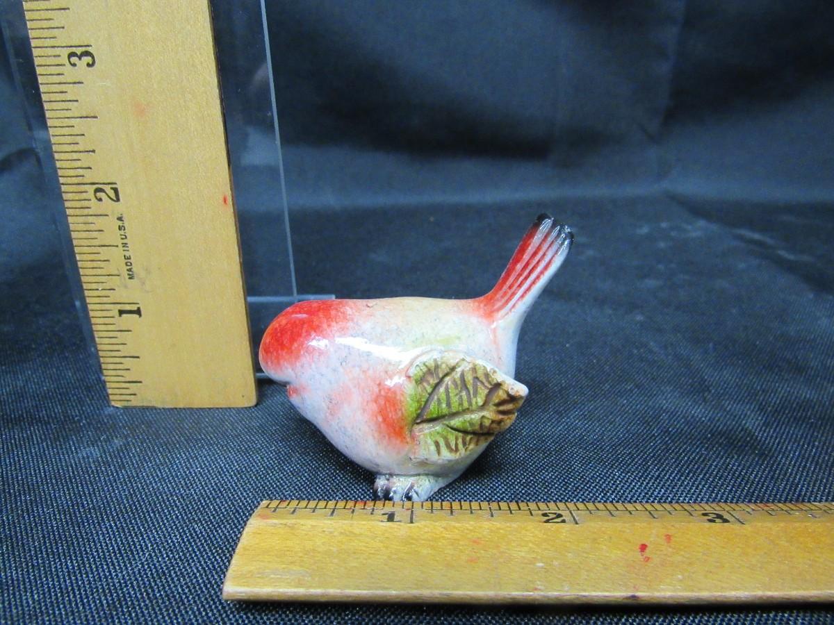 Cute vintage red bird figurine. Miniature small size at about 2". Good vintage condition. Unmarked.