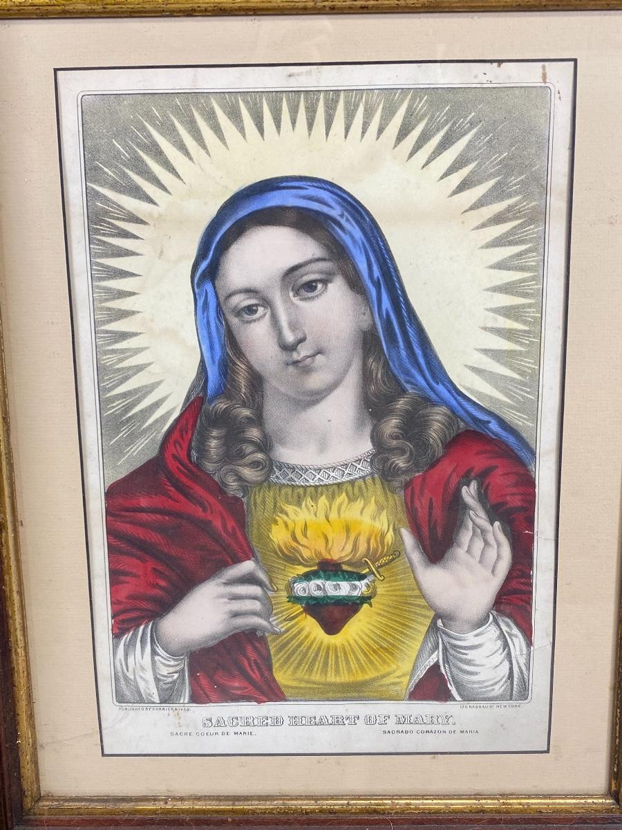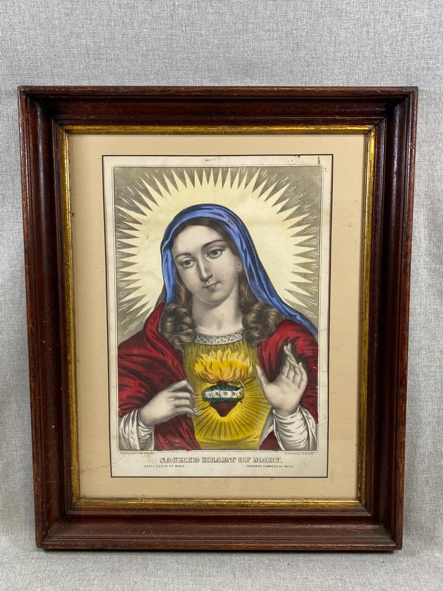 Framed colorized print "Sacred Heart of Mary" published by Currier & Ives.