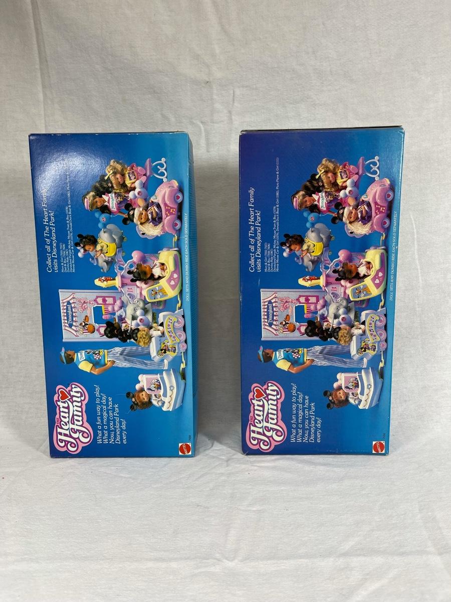 Vintage Mattel "Heart Family" sets. Special edition Heart Family visits Disneyland Park doll sets, celebrating Disneyland's 35th anniversary. Unopened packaging. In good condition, may be dusty from display on shelf.