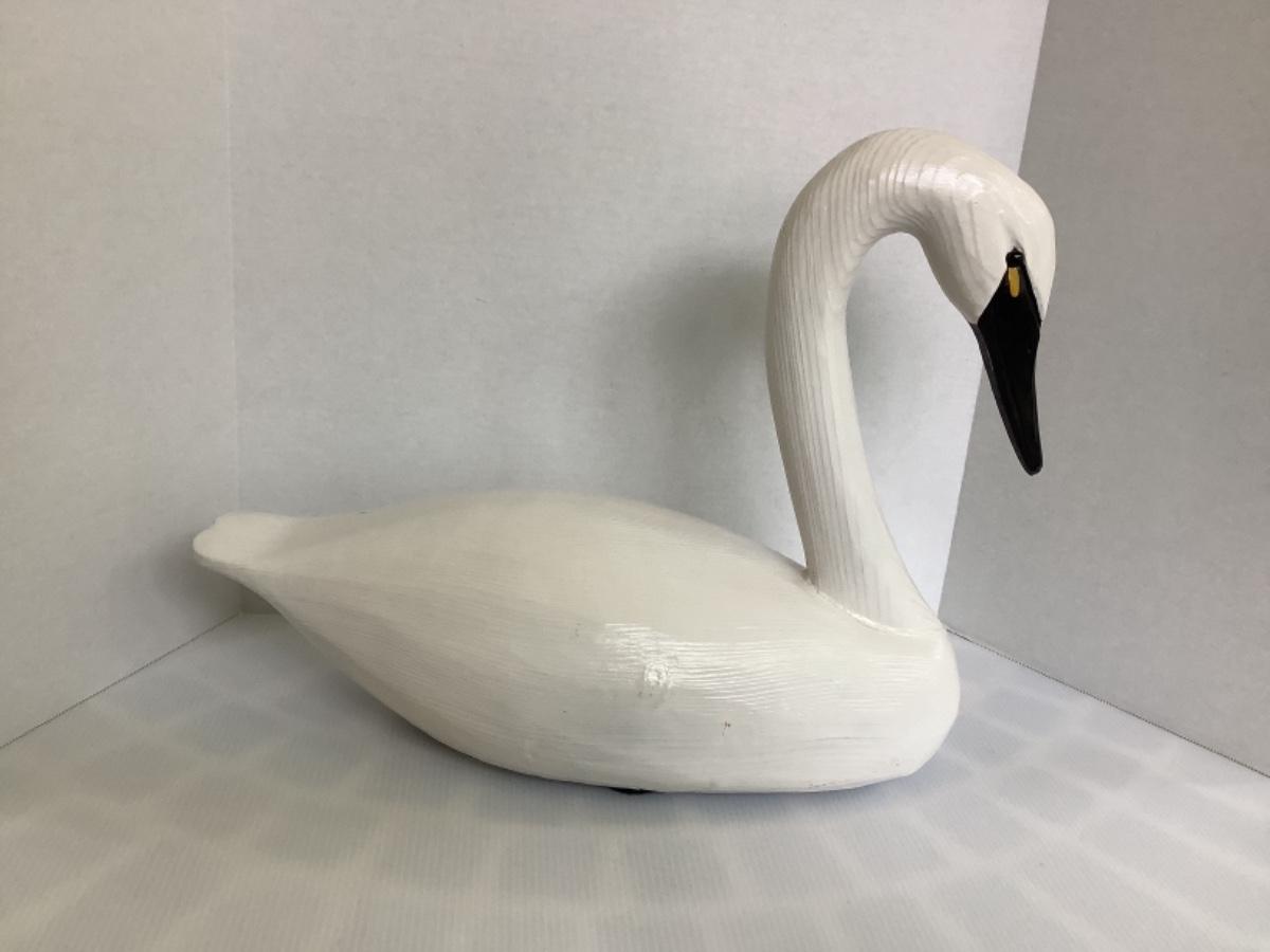 F 607  Hand Carved White Swan Decoy by Charles Fish