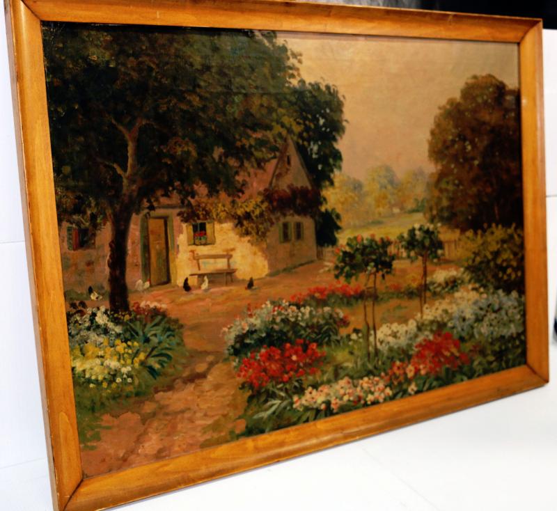 34" x 24" framed, signed at lower right corner, oil on canvas.