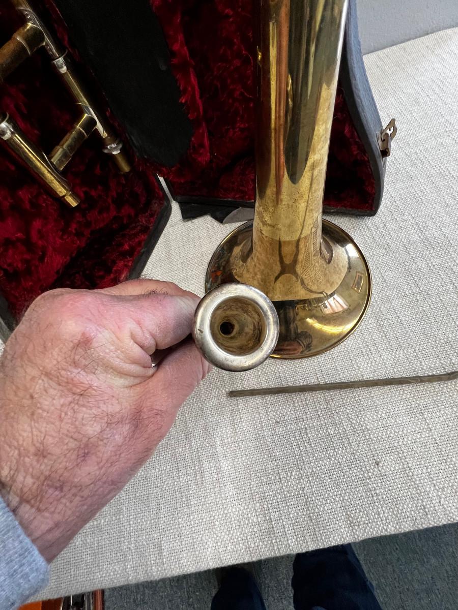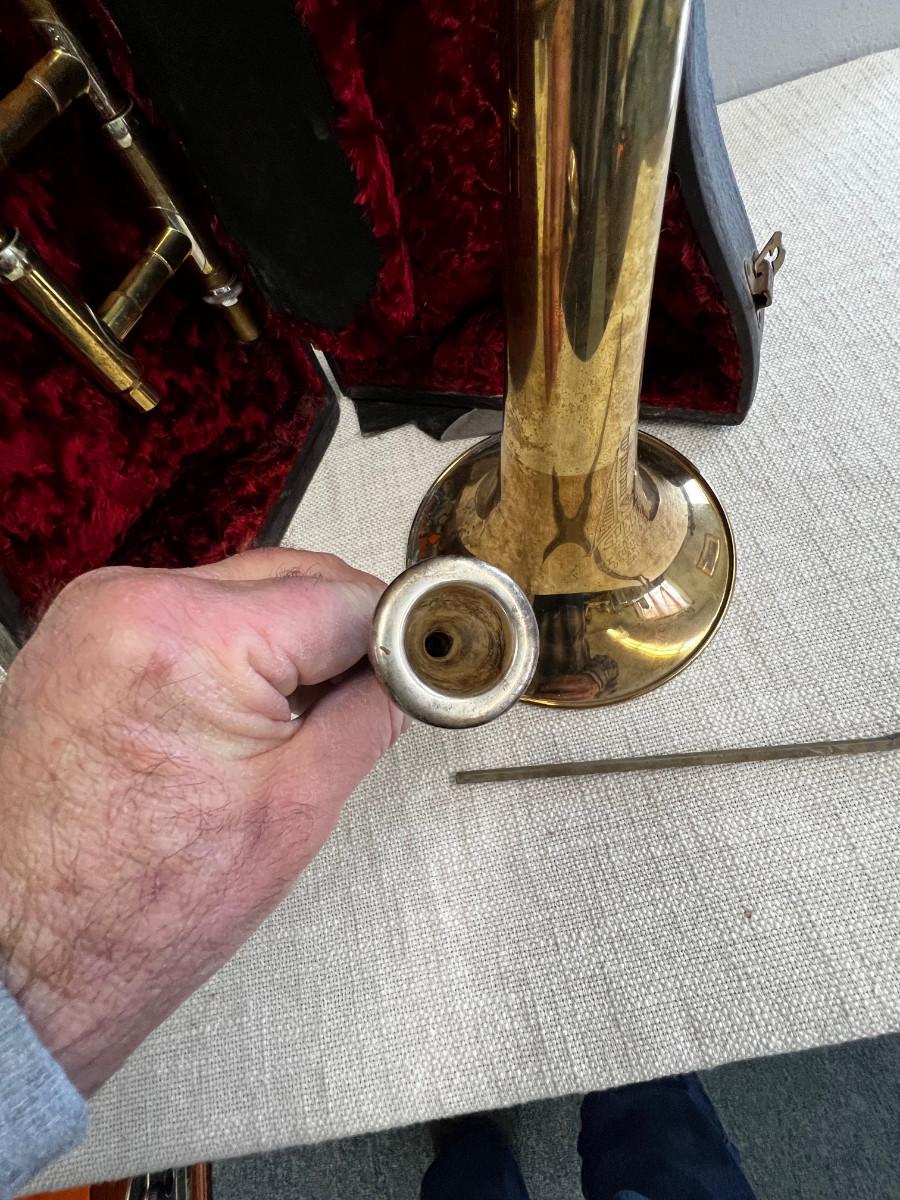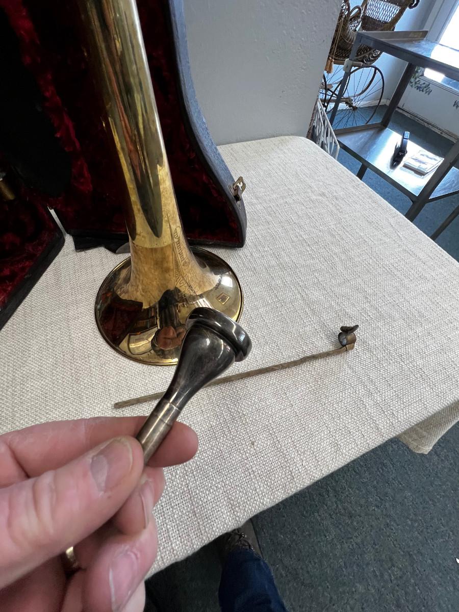Appears to be in good condition. Comes with an Olds #3 Mouth Piece.