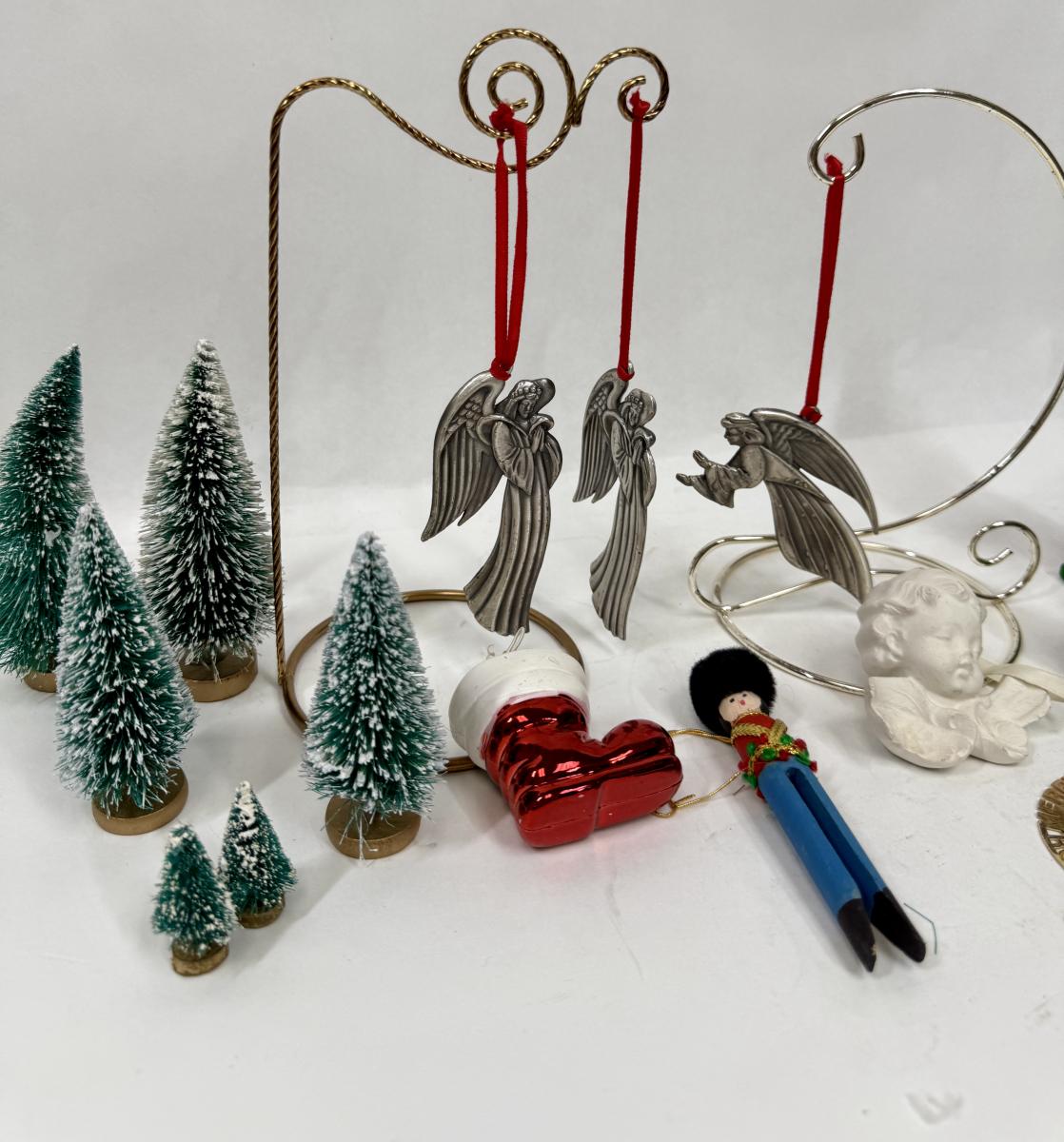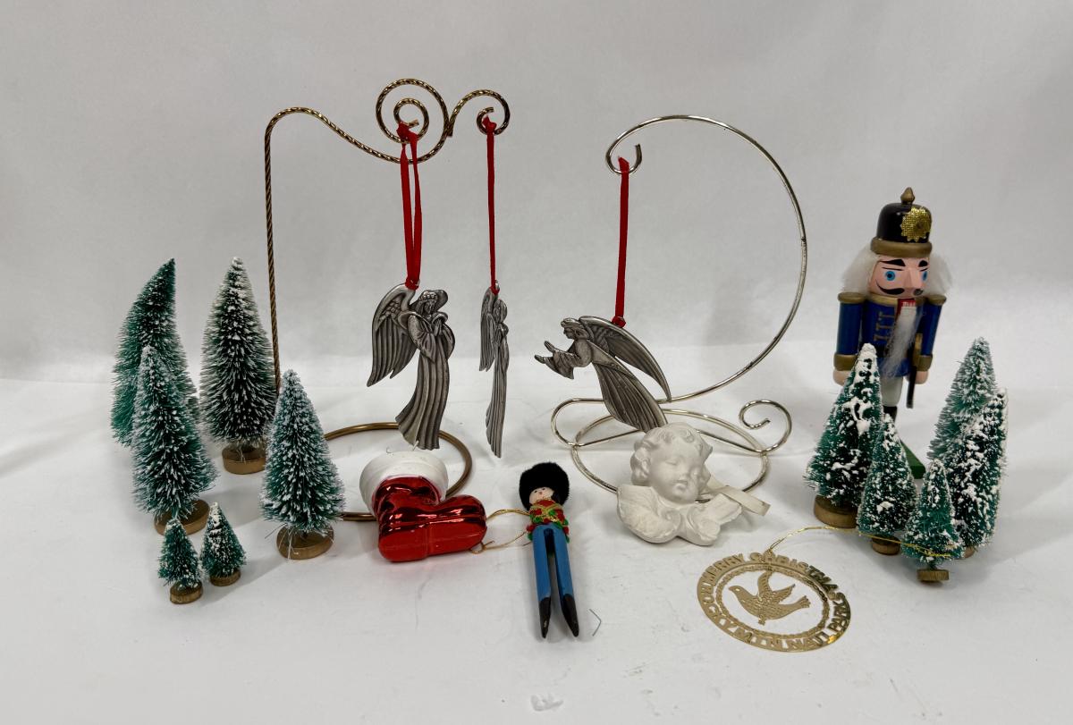 Vintage Christmas Lot - ornaments Bushy Christmas Trees, and 2 stands