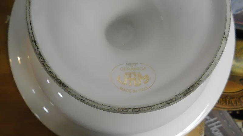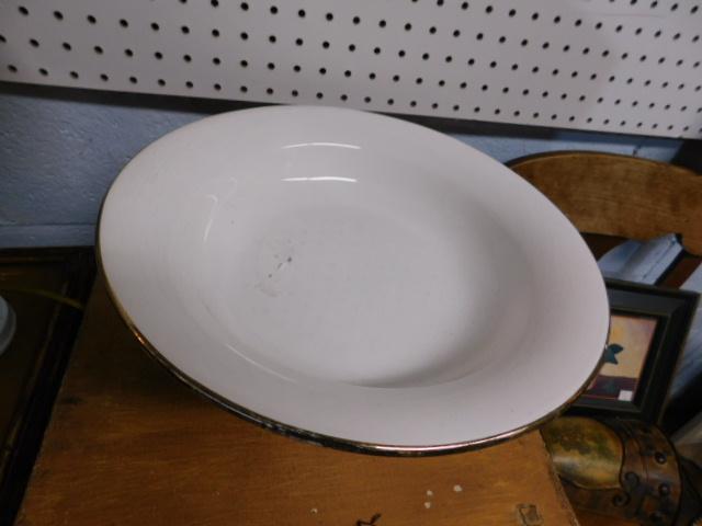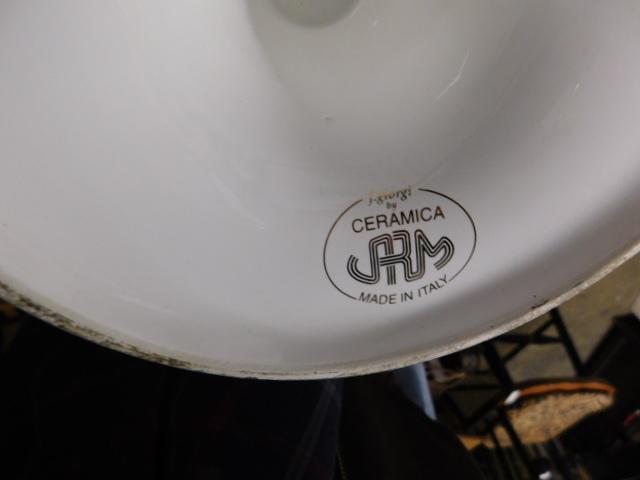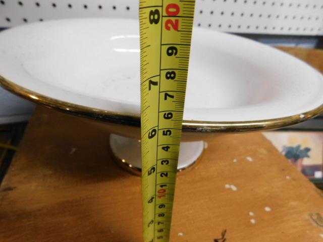 F Giorgi Ceramica Ivory and Gold Rim Footed Bowl 13"x6" may have some wear to rim