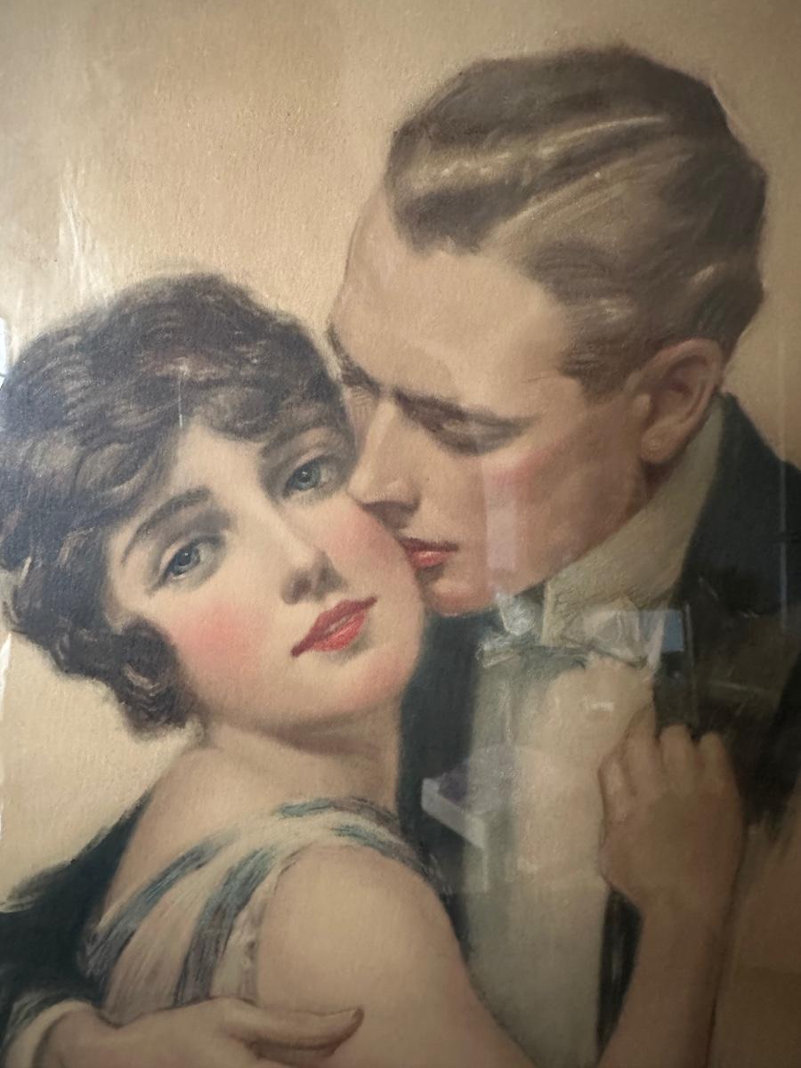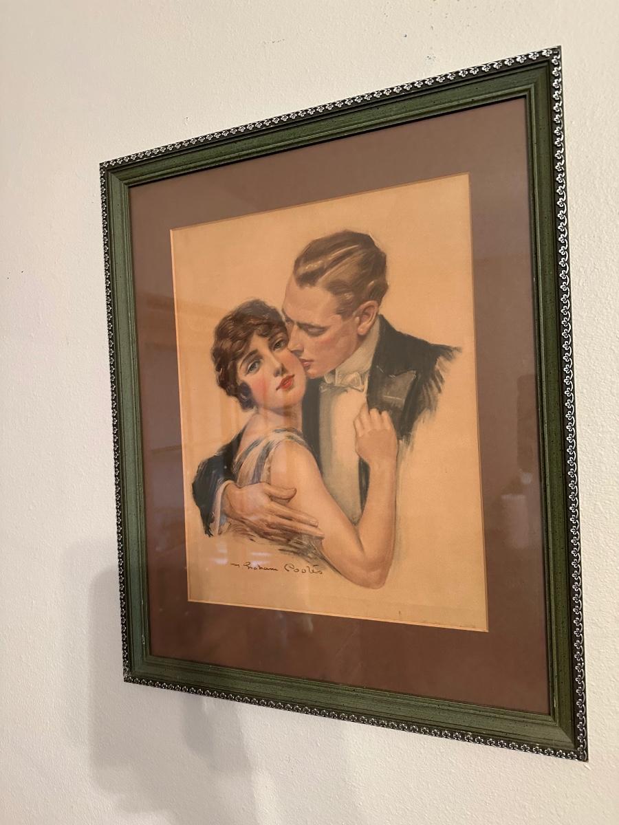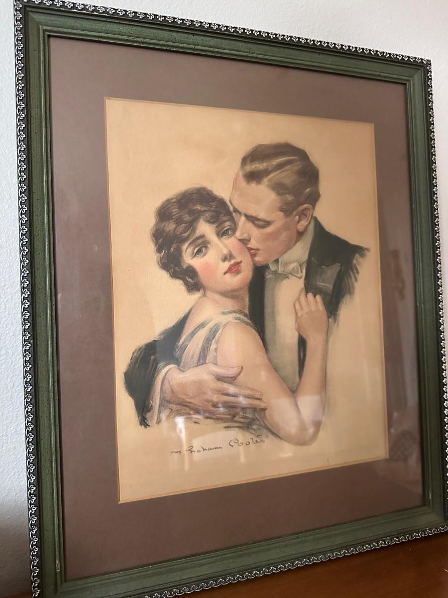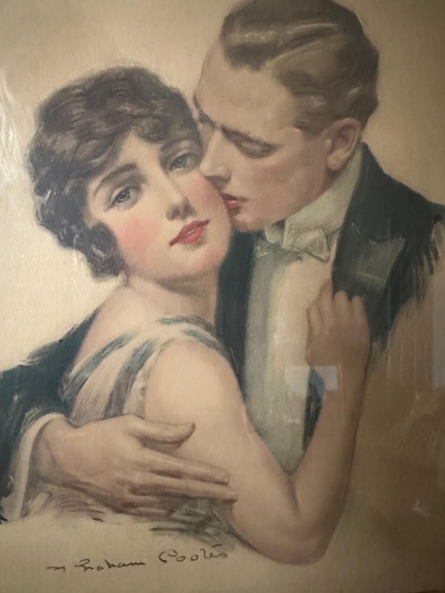 F. GRAHAM COOTES Framed Artwork 'A Stolen Kiss' GOUACHE & PASTEL ON PAPER