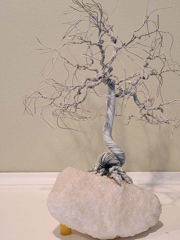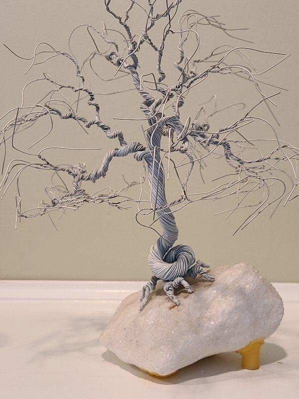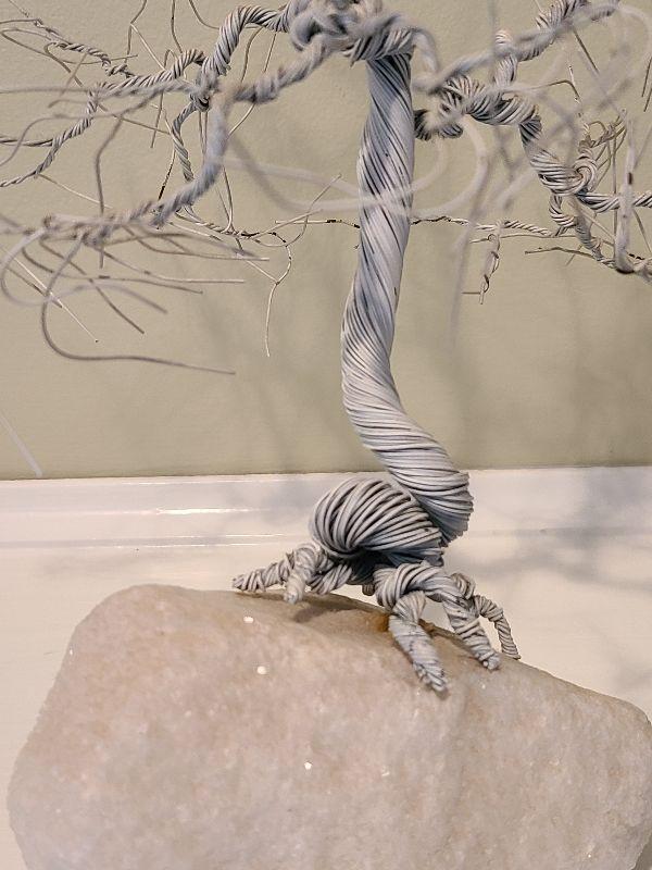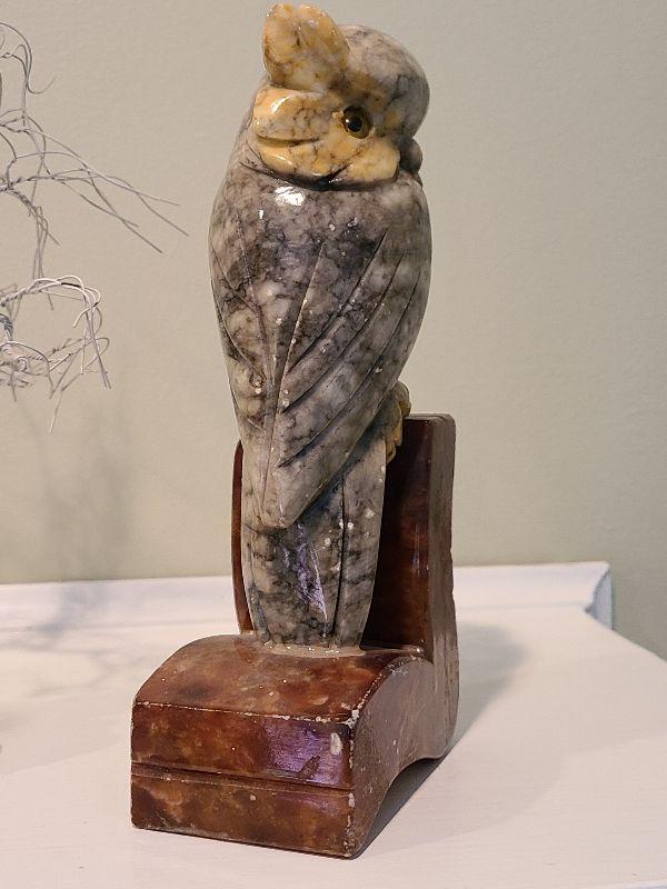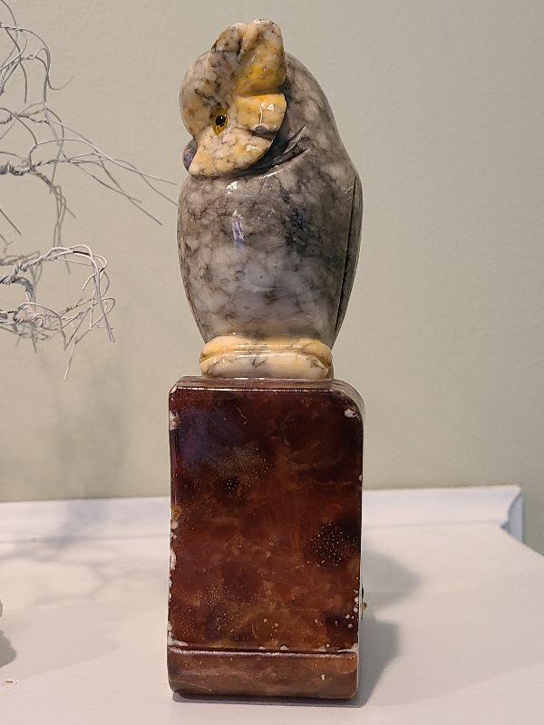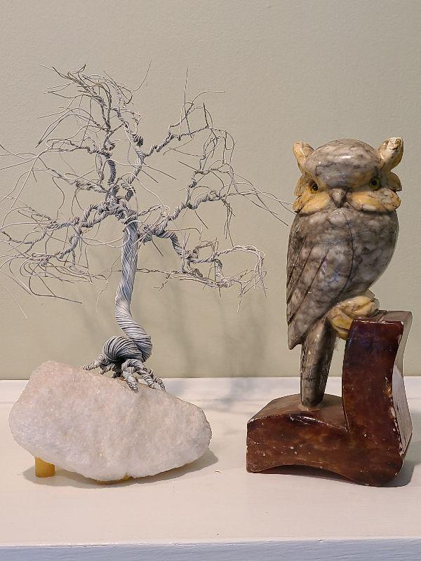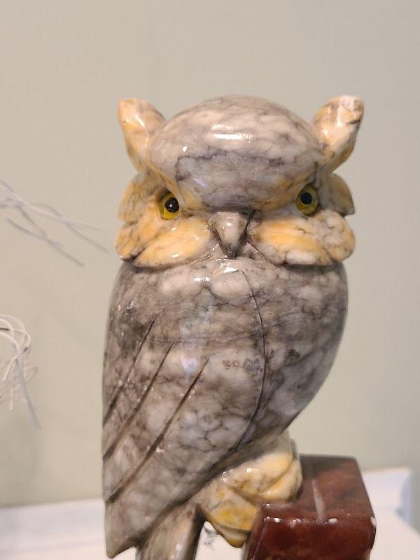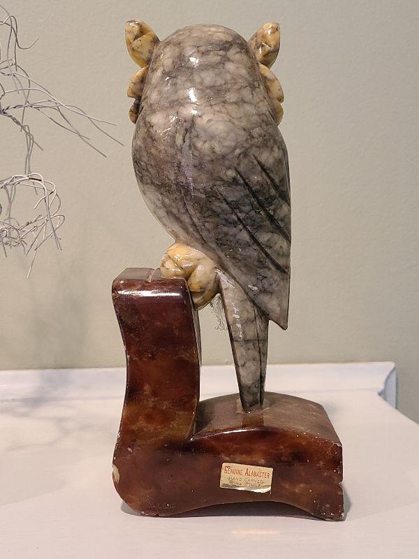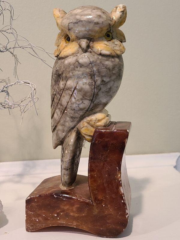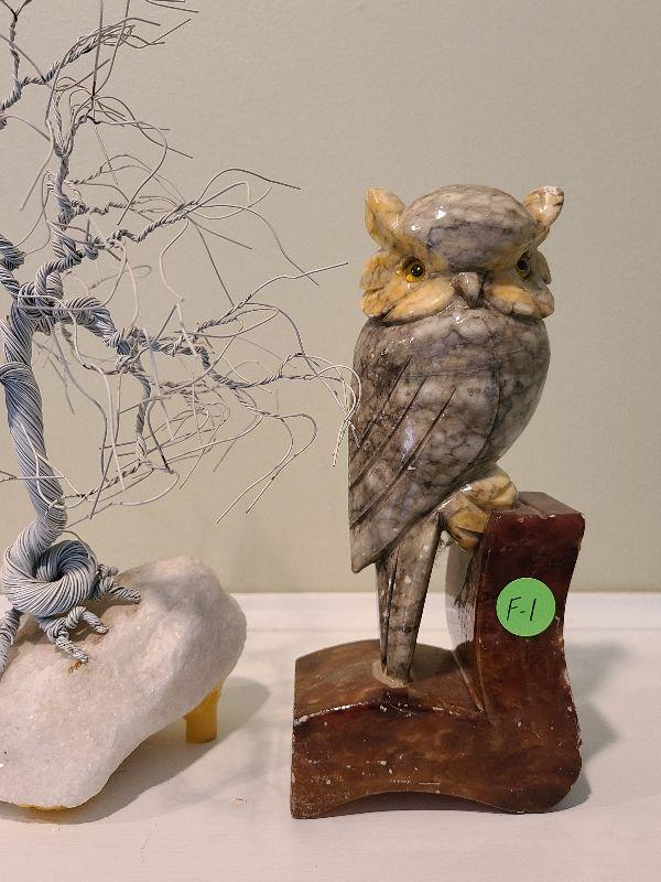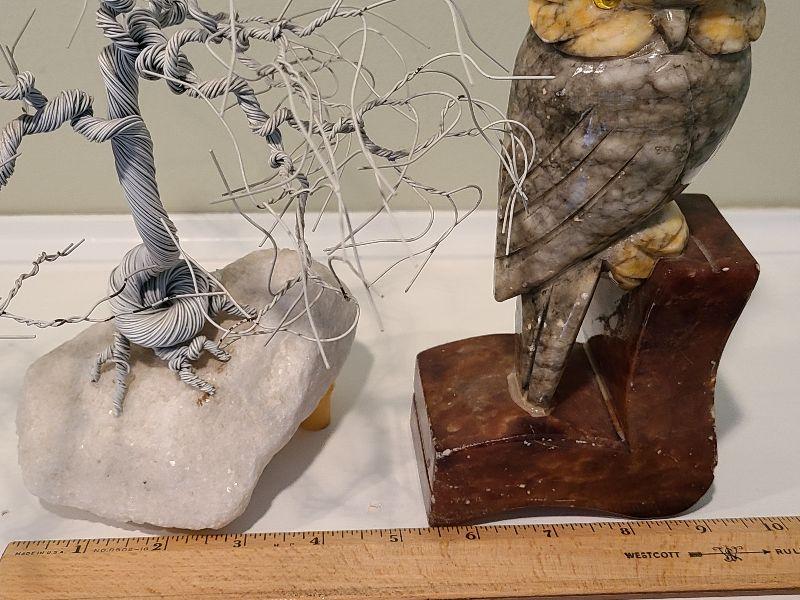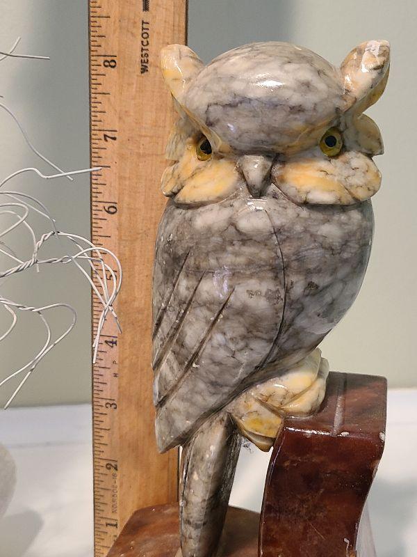 F1 Alabaster Owl Bookend & Sculpted Metal Tree On Quartz Base