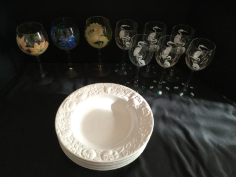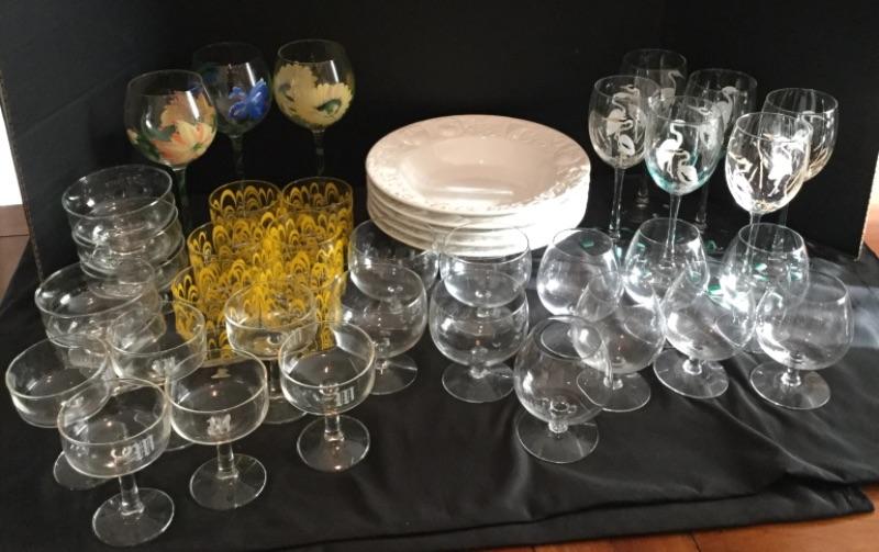 F1005: Set of Hand painted Stemware and Glassware Lot