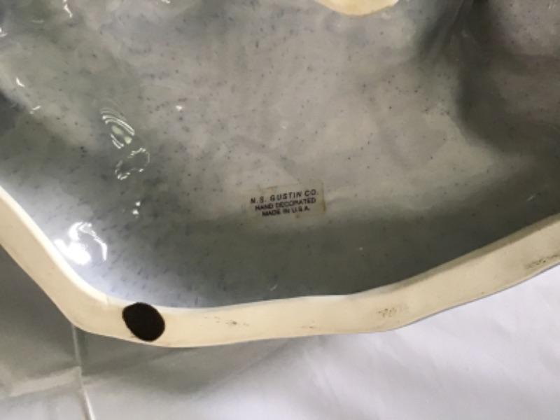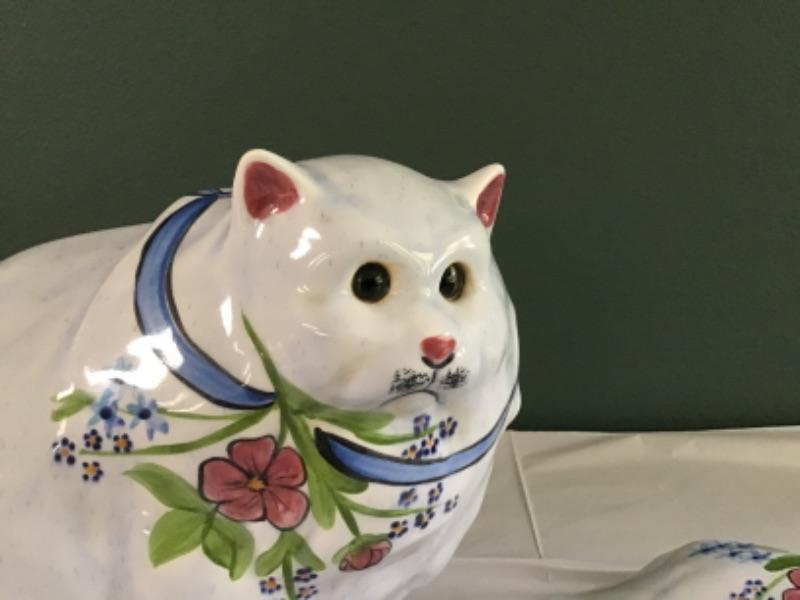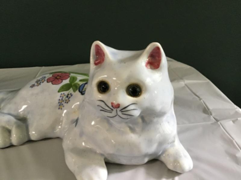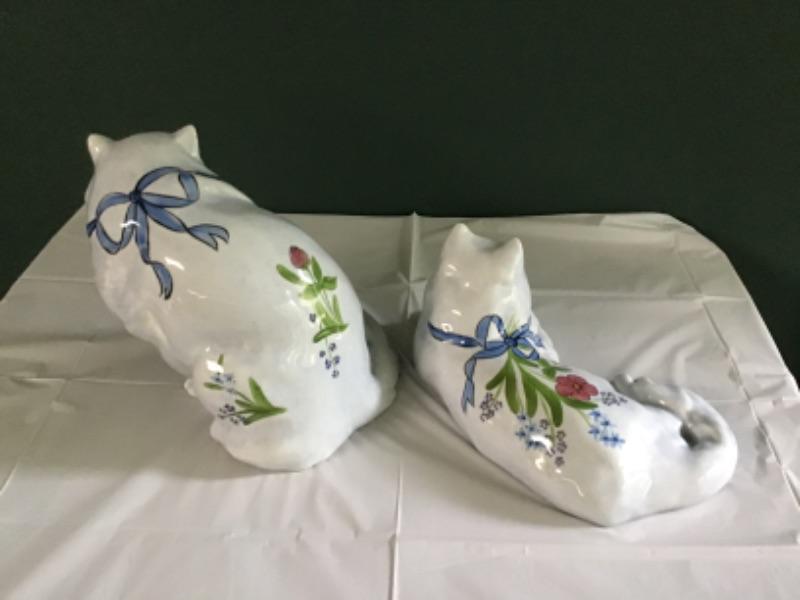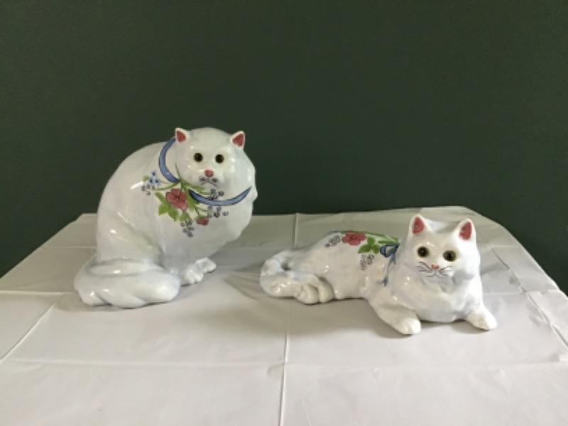 F-104 (2) Large N.S. Gustin Hand Decorated Ceramic Cats with Glass Eyes