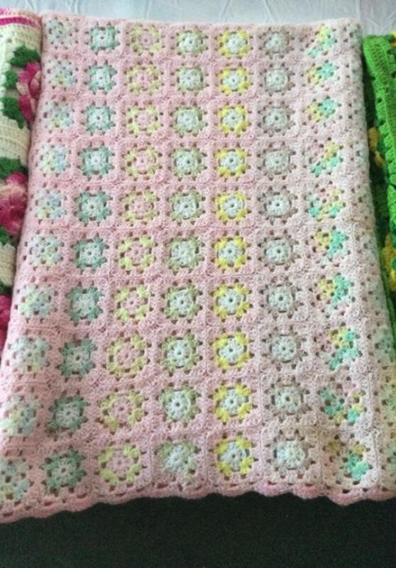 Three handmade crocheted floral square throw blankets