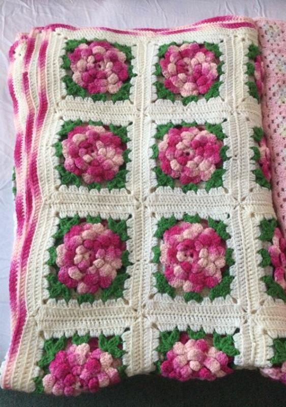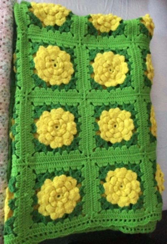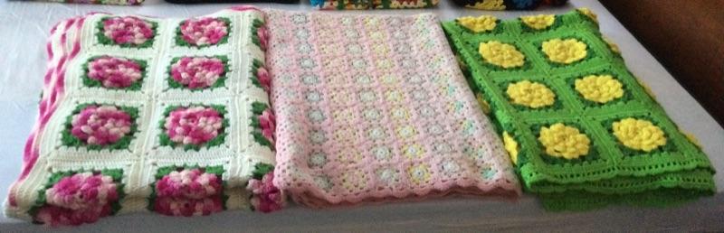 F-104 Three Crocheted Floral Throw Blankets