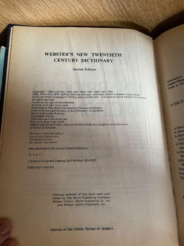 F104: Webster's New Twentieth Century Dictionary 2nd Edition 1979