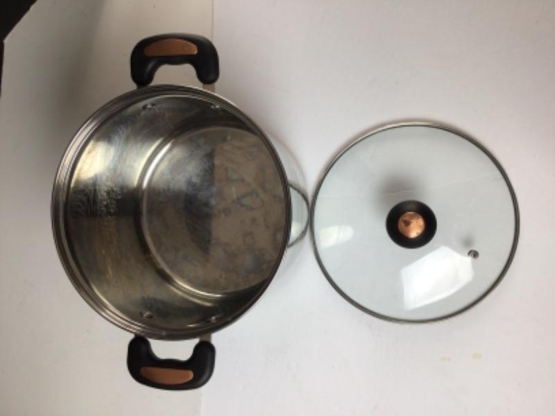 Copper Lux Stock Pot with lid 10” x 7.5” tall with utensils.