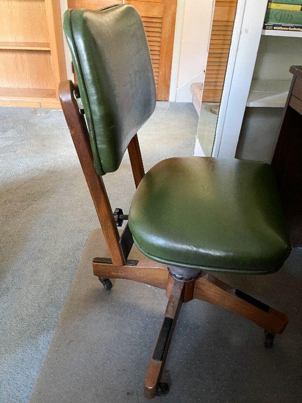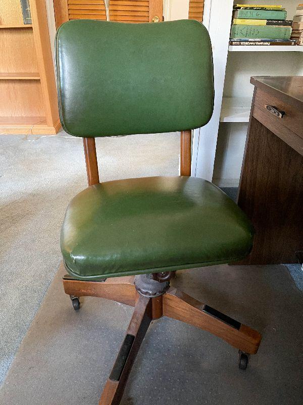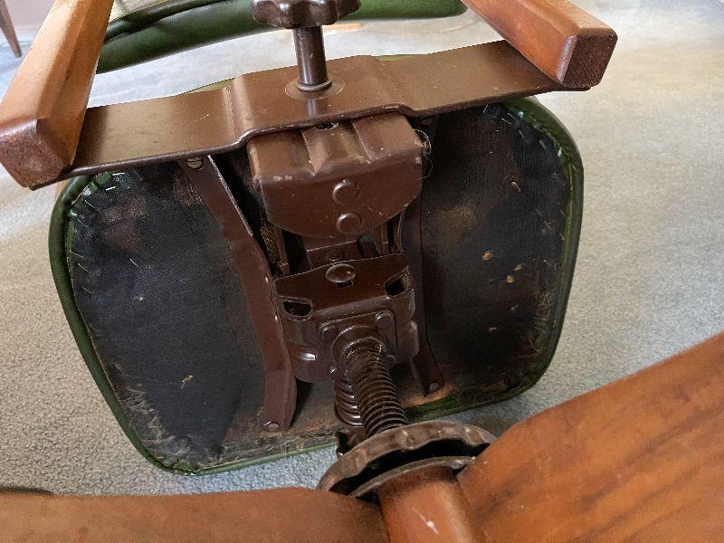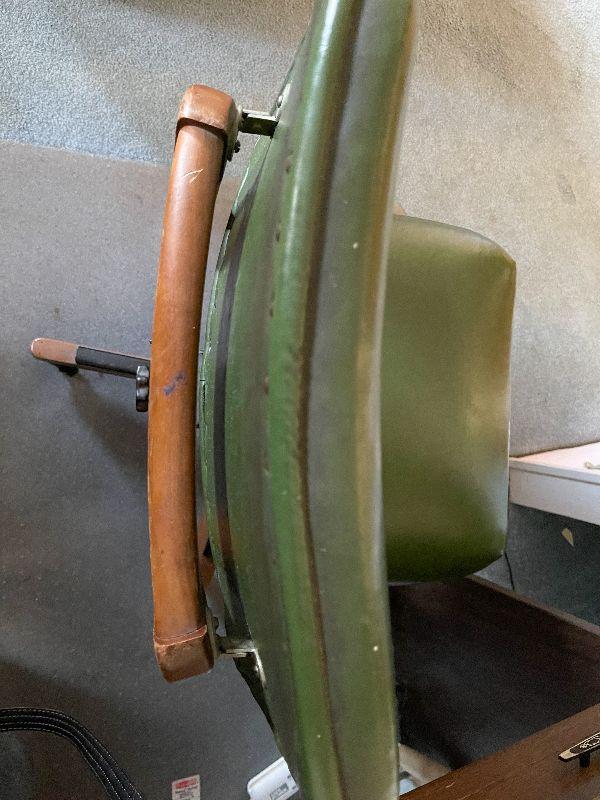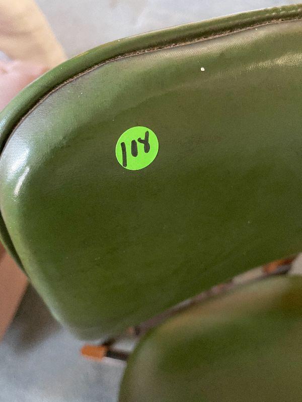 Green vinyl and wood, in great shape! Just needs some cleaning.. Please review all photos. First photo shows all that is in the lot, unless otherwhise noted. All items sold AS IS-WHERE IS. Please bring help for larger lots, and boxes or bags to remove your lots.