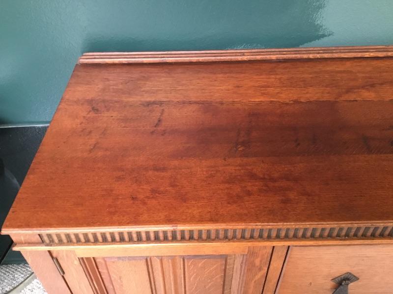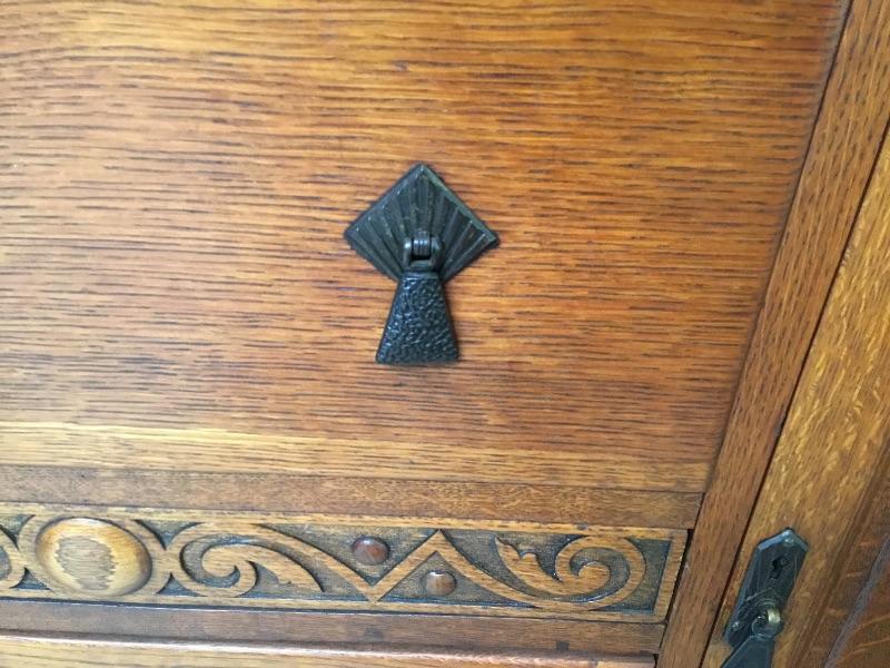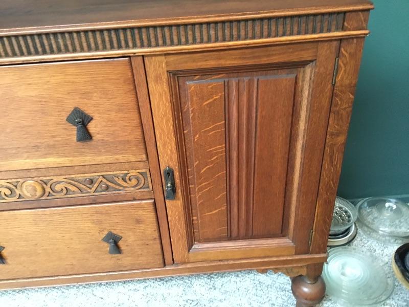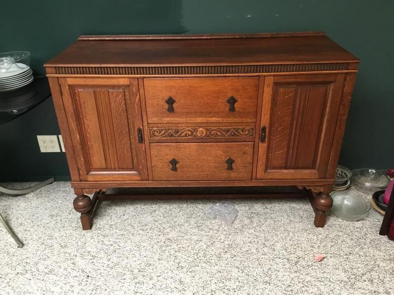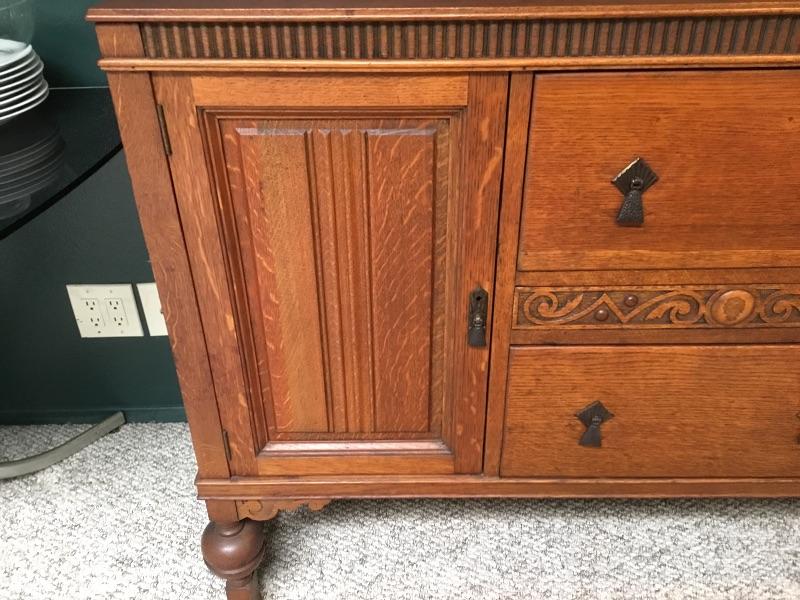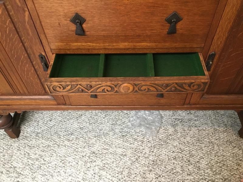 Antique Spanish revival buffet 54”w x 20”d x 38”h with hidden silverware drawer