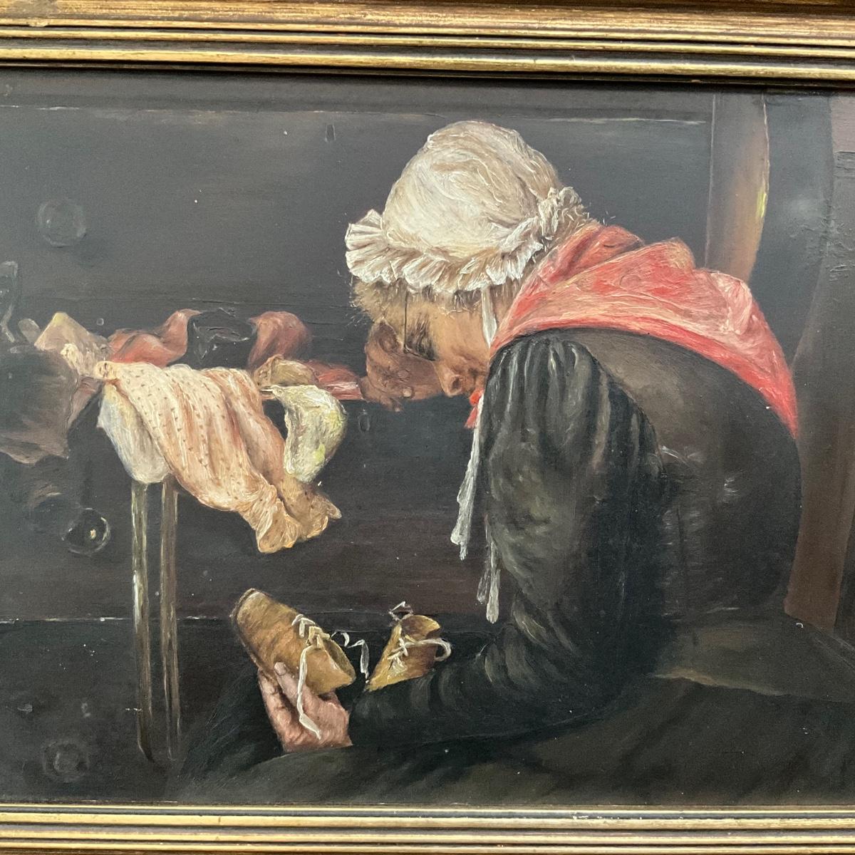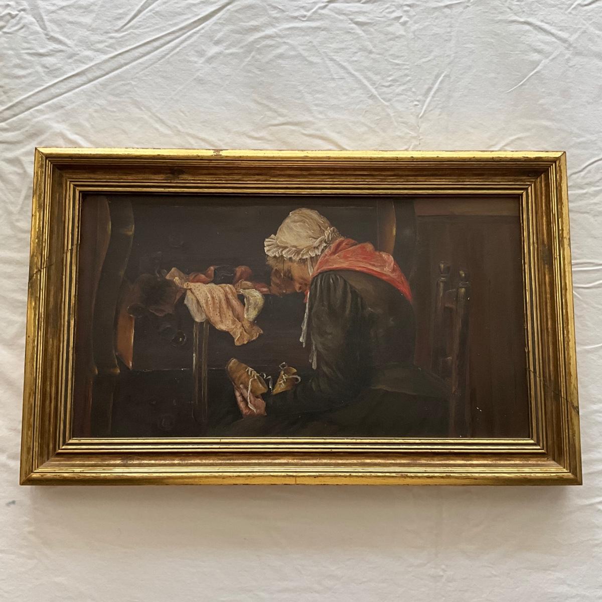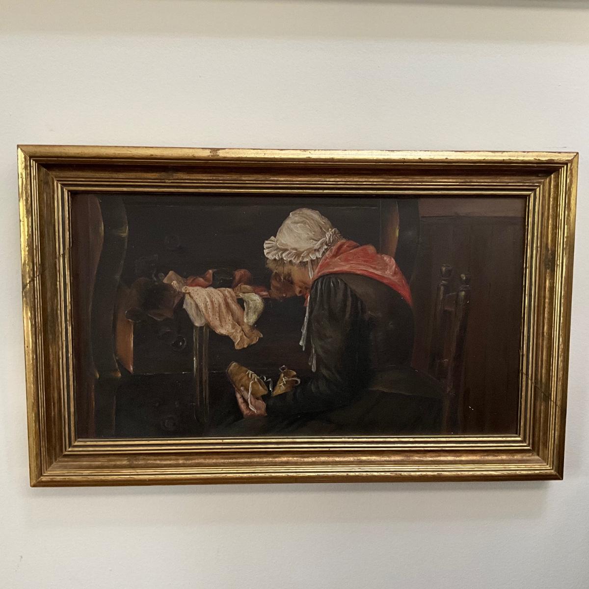 F-1144 Antique Oil Painting in the manner of Harry Roseland "Tender Memories"