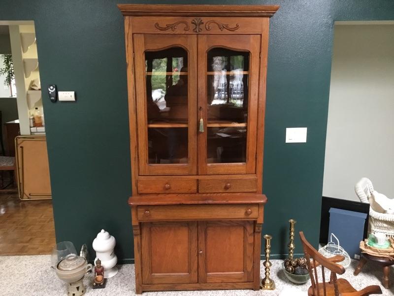 Antique primitive French country oak cabinet. 36”w x 22”d x 80”h