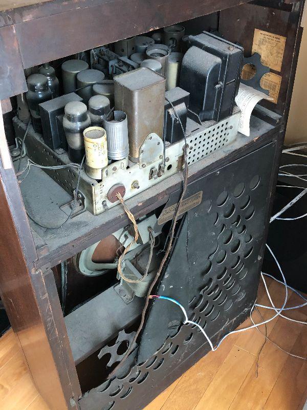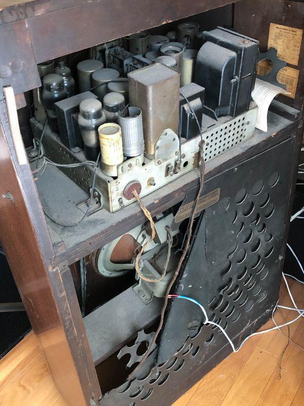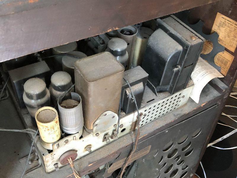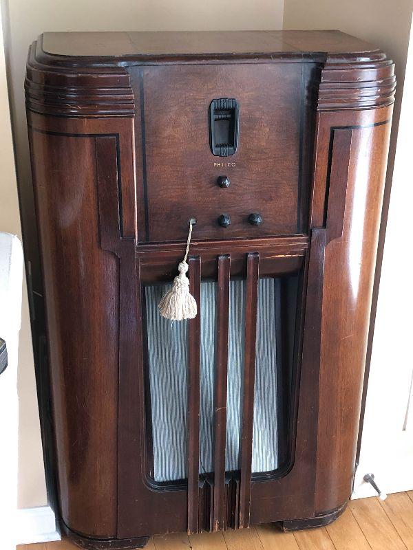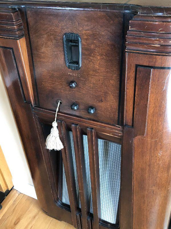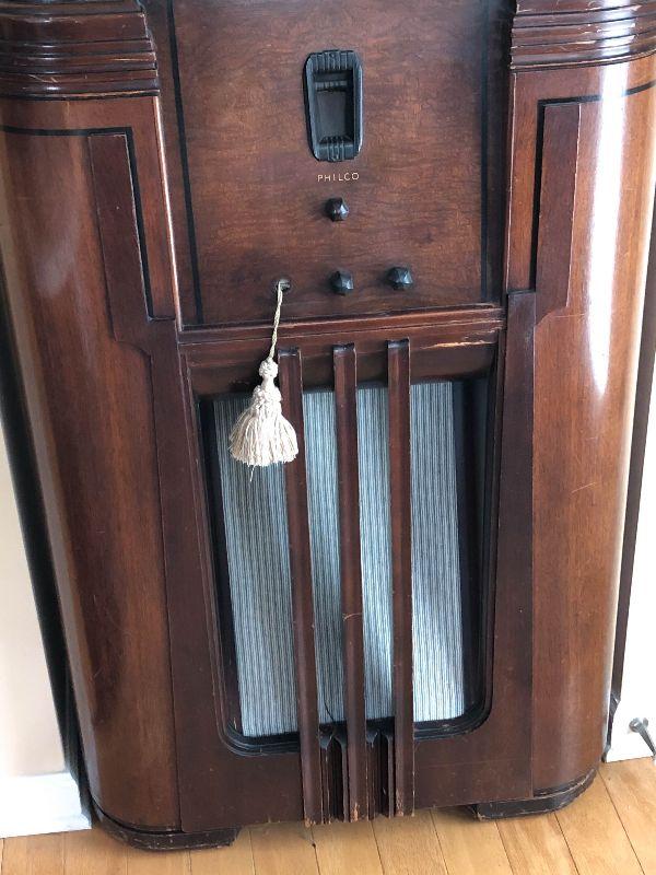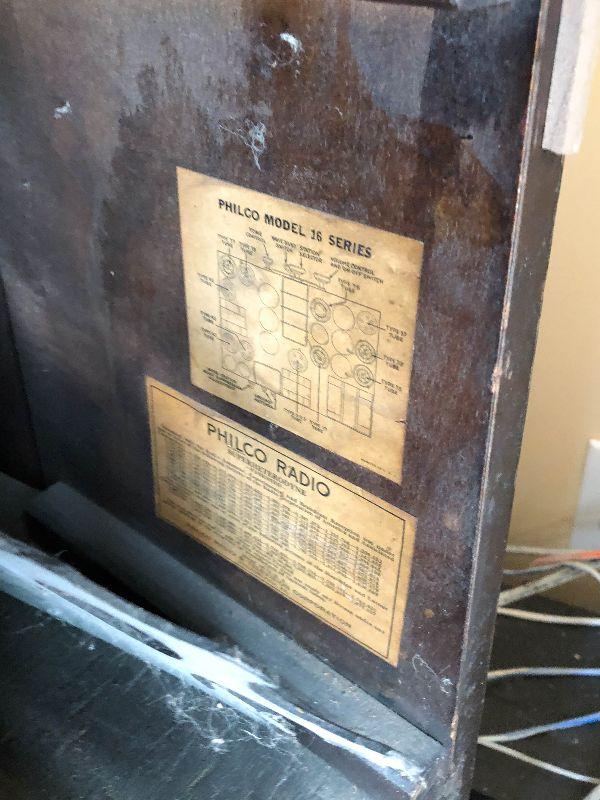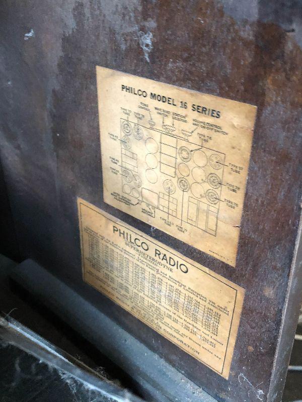 Philco antique radio in wooden cabinet. Still has original tubes. Untested.