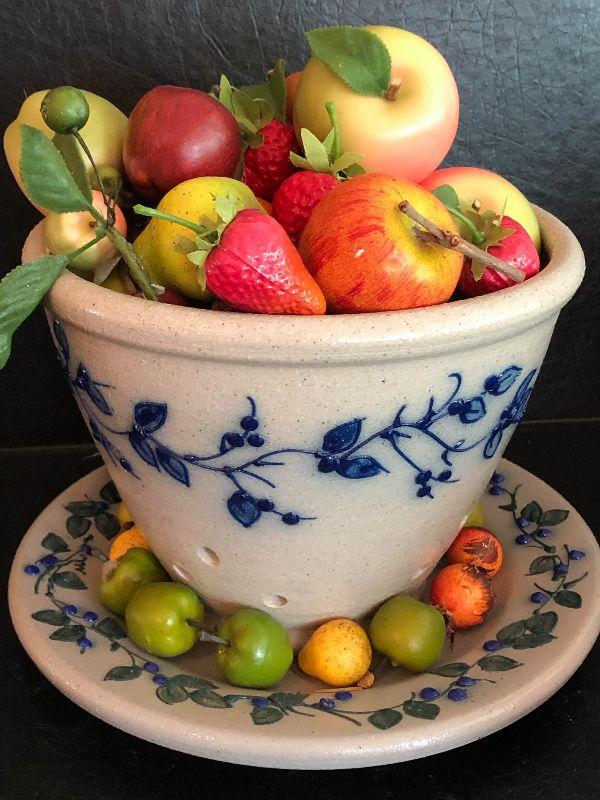 This beautiful stoneware is collectible and has a raised blueberry vine design around the edges of the berry bowl and plate. Beautiful decor or functioning berry bowl! Please see pictures for contents of the lot, condition of the lot, and measurements if needed. Thank you for looking and have fun bidding!
