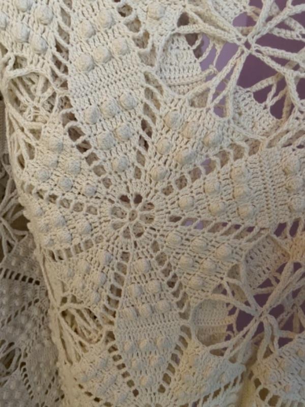 Pair of vintage popcorn crocheted bedspreads measuring approximately 102” x 119” some yellowing in one of the bedspreads