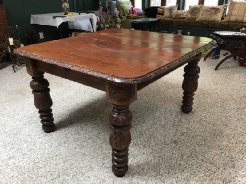 F-165 Antique Heavily Carved Antique Wood Dining Table - No Chairs/Table Only