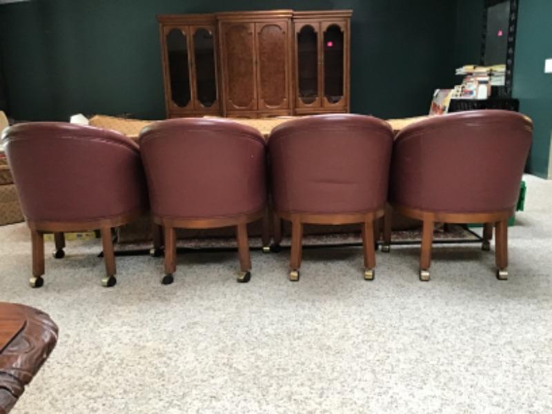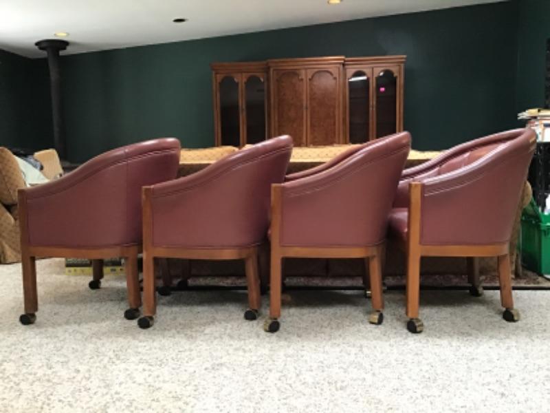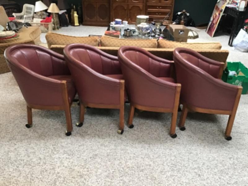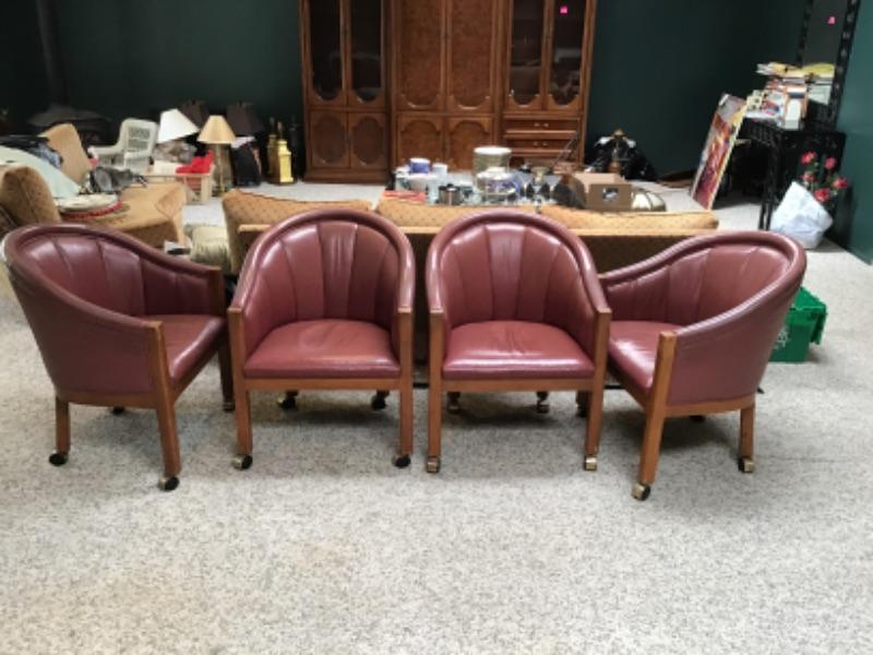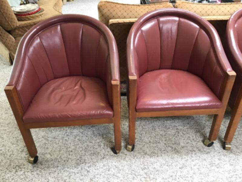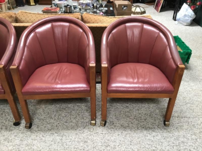 F-166 Mid-Century Leather Barrel Back Chairs on Wheels