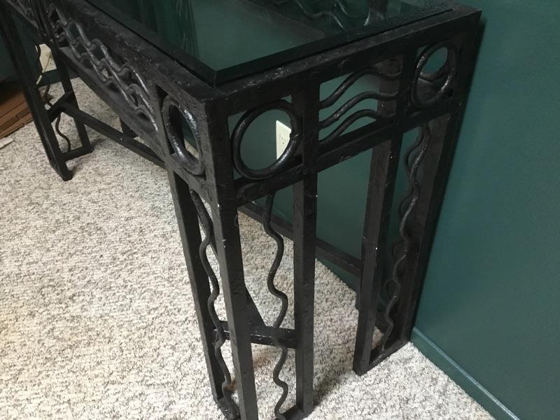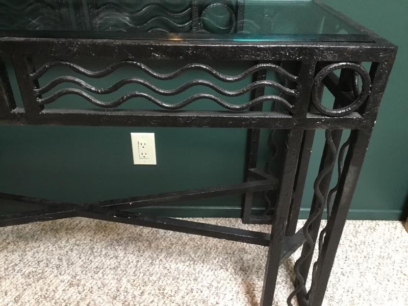 F-168 Rod iron entry table with beveled glass, big and heavy.