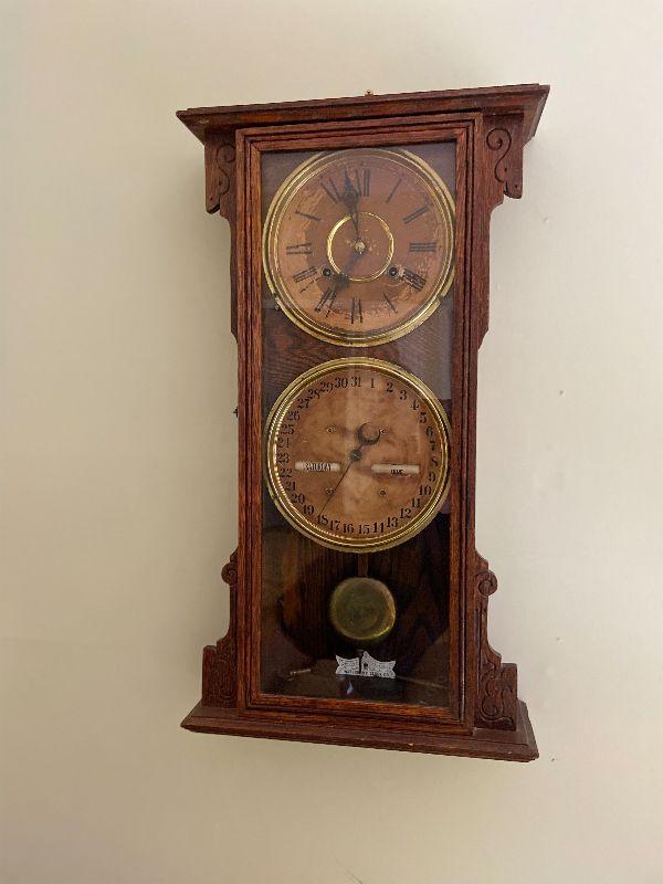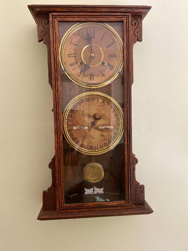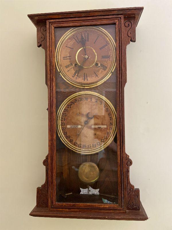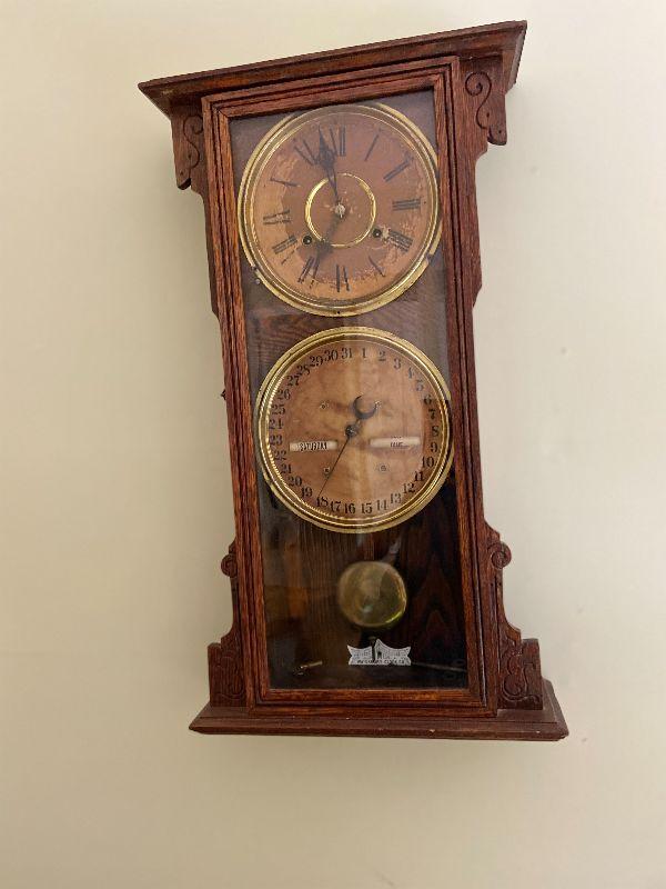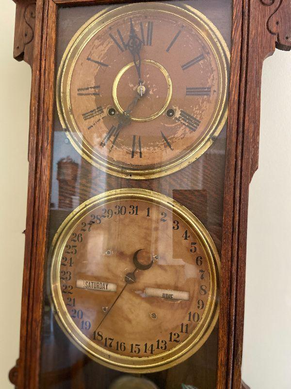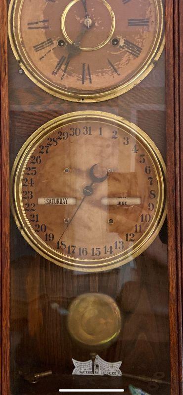 F18: Antique Waterbury Clock Co. Clock and Calendar
