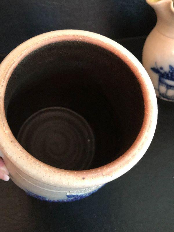 This crock is almost 8 inches tall and is gorgeous! This beautiful stoneware is collectible and has a raised blueberry basket design on the front. Beautiful decor or functioning crock! Please see pictures for contents of the lot, condition of the lot, and measurements if needed. Thank you for looking and have fun bidding!