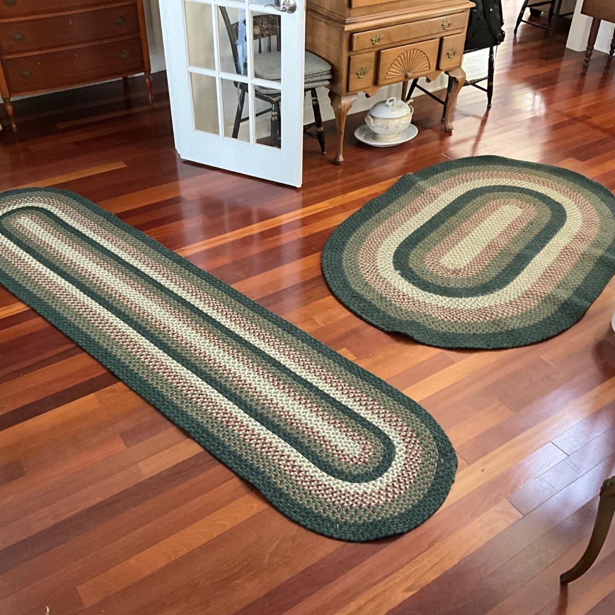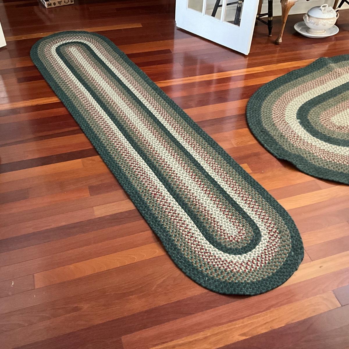 F2164 Two Green Braided Area Rug and Runner