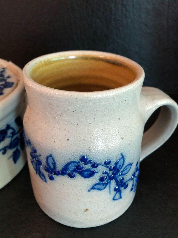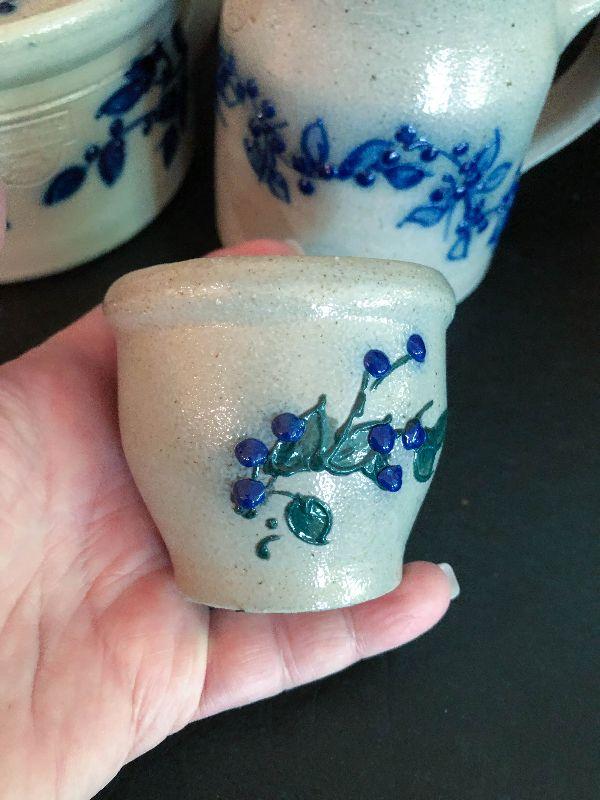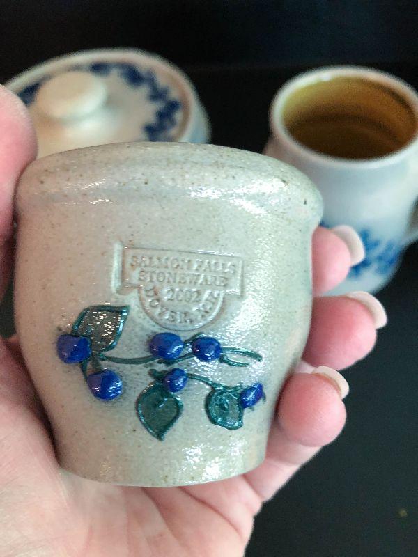 F25: Salmon Falls Stoneware Lot Blueberry Vine Design