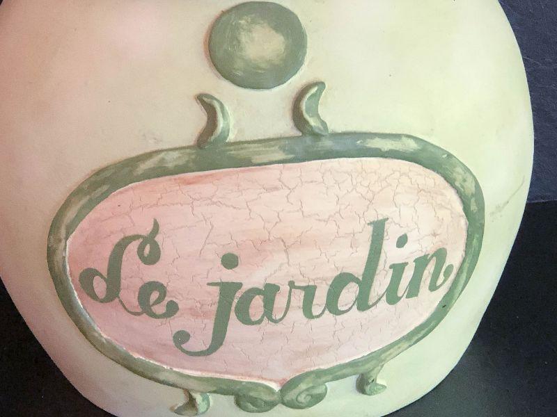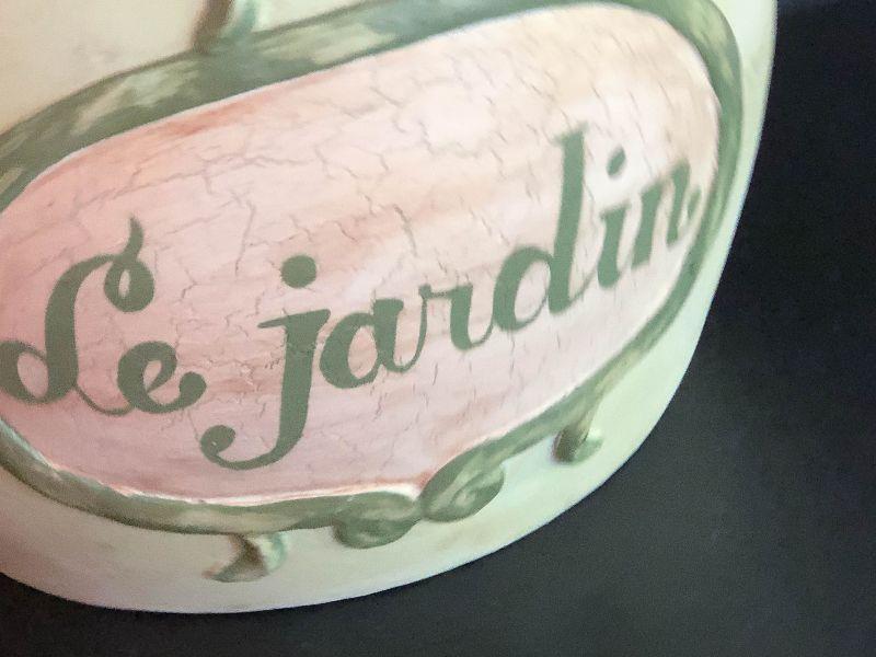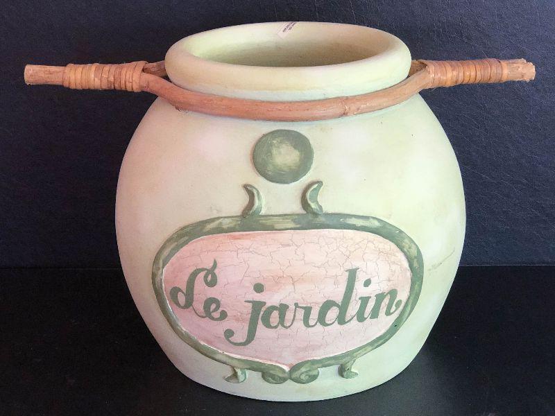 Le Jardin Jar that is huge and heavy! Great alone or as a planter! This beautiful stoneware is collectible and has a raised blueberry vine design around the edges of the berry bowl and plate. Beautiful decor or functioning berry bowl! Please see pictures for contents of the lot, condition of the lot, and measurements if needed. Thank you for looking and have fun bidding!
