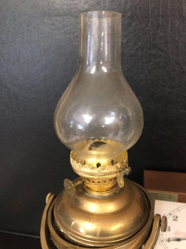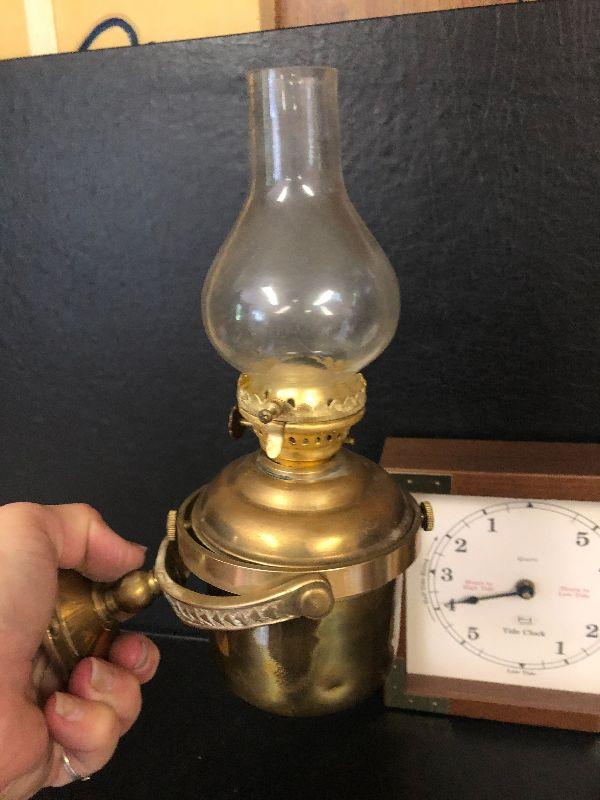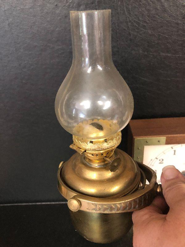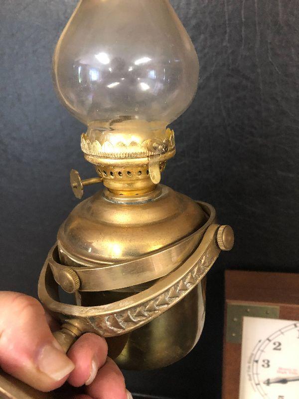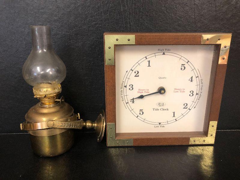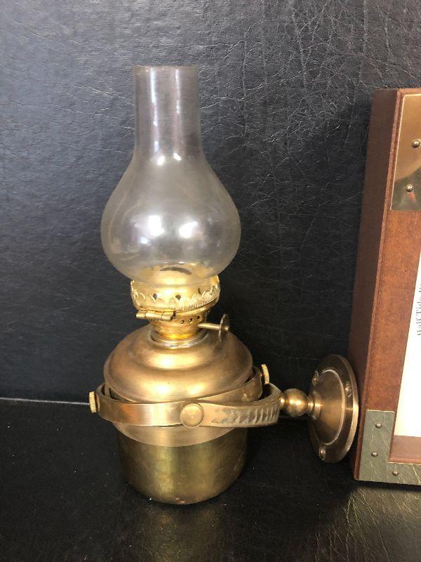 F34: Brass Wall Mount Oil Lamp and Tide Clock