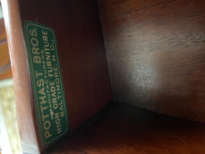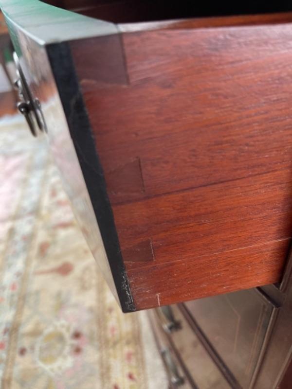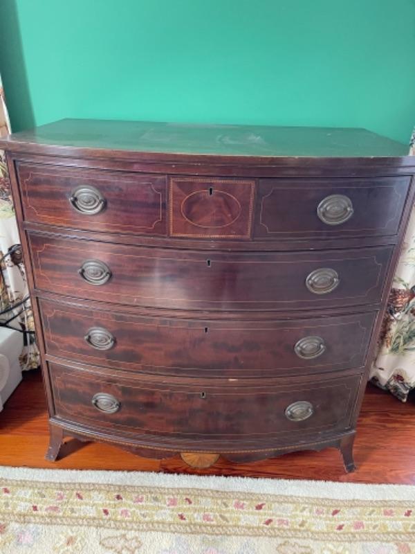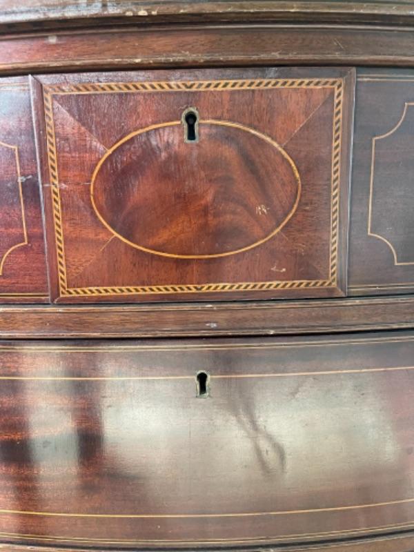 F343 Antique Mahogany Potthast Bow Front Veneer Inlay Dresser