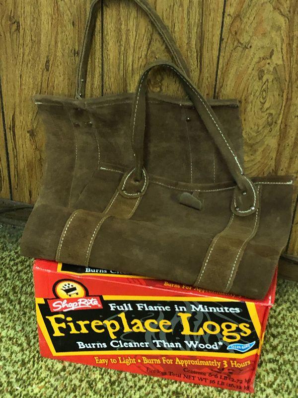 F4: Suede Log Holder and Fireplace Logs