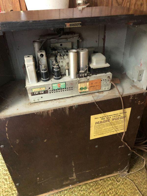 This is a very nice antique standing radio that is perfect for any decor. Untested. 26x12x40 inches. Please see all pictures for exact contents of the lot, condition of the items, and measurements if taken. Thank you for looking and have fun bidding.