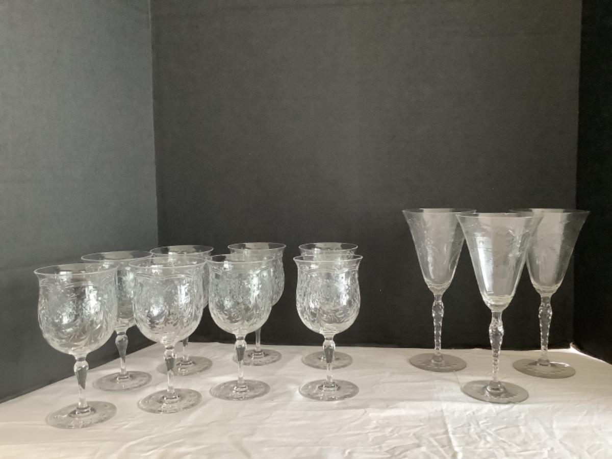 F517 Set of 11 Etched Crystal Pairpoint Goblets