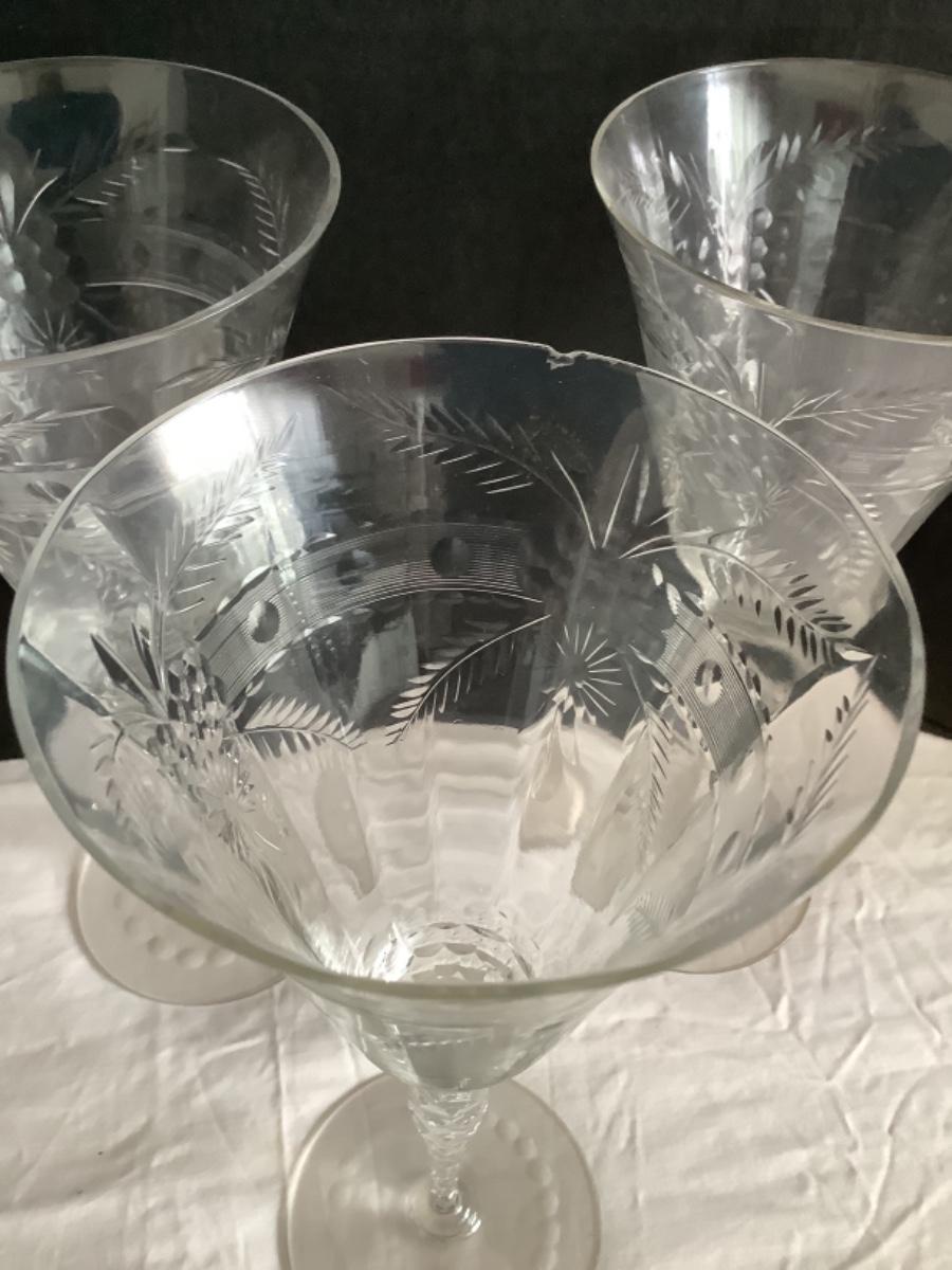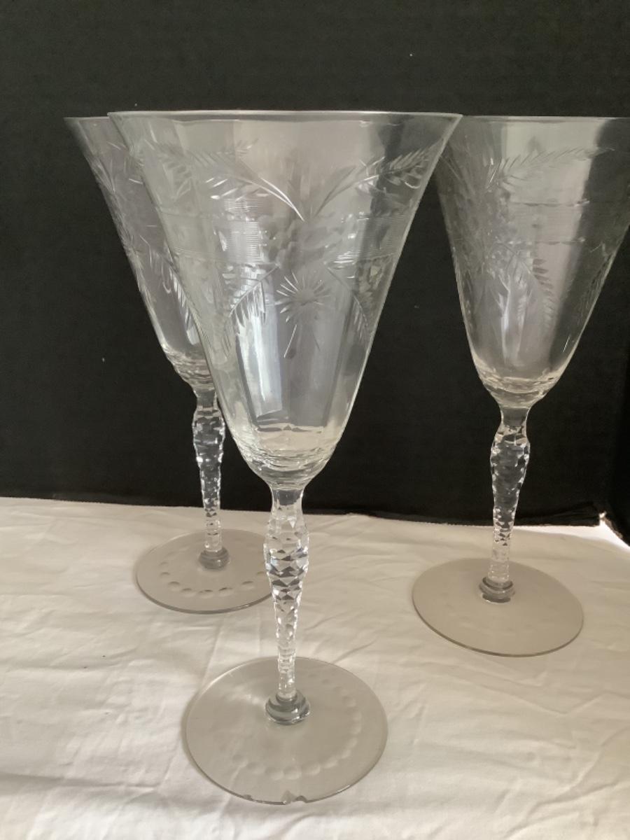 Set of 8 wine Pairpoint Goblets with 3 tall etched goblets