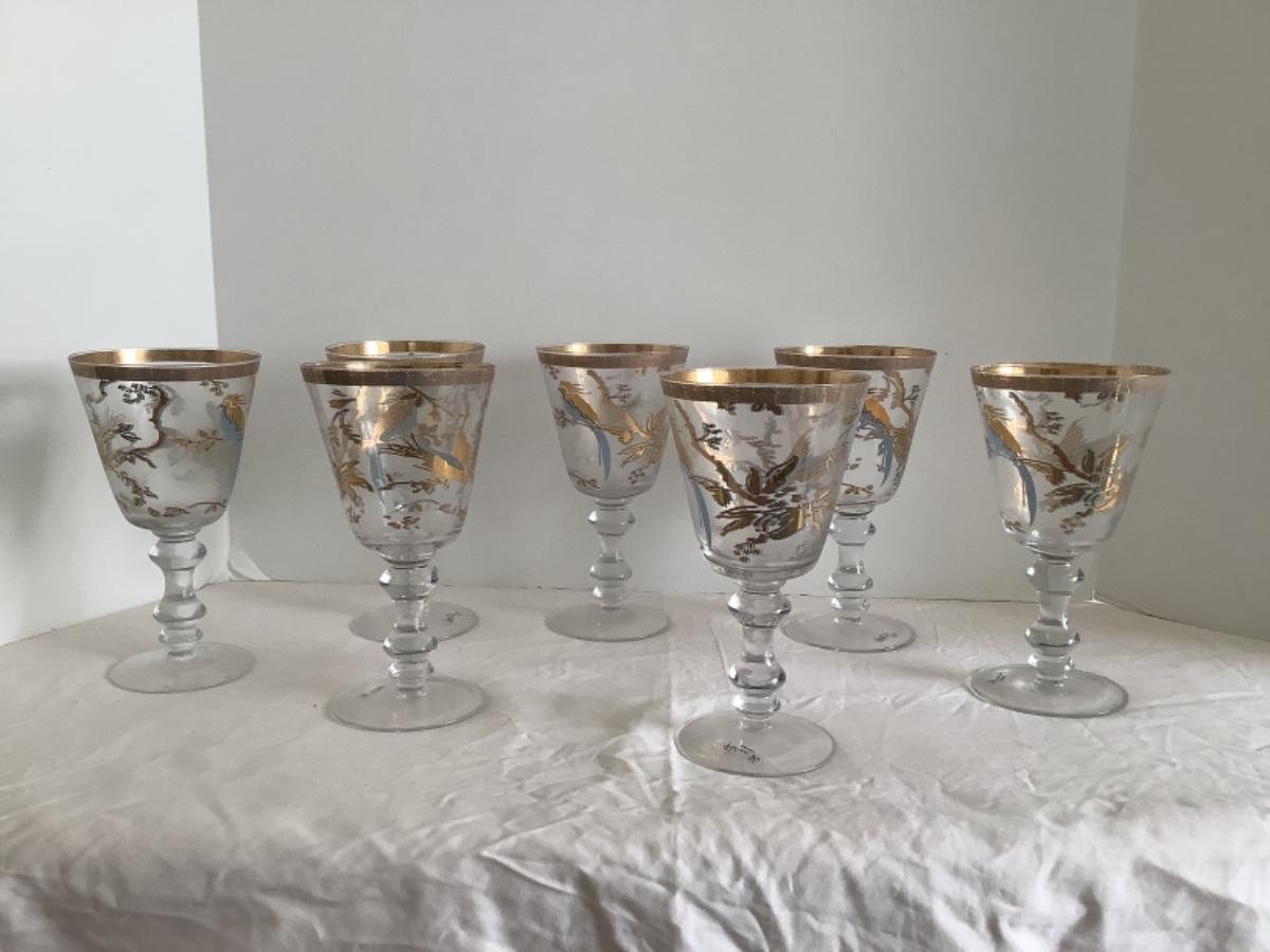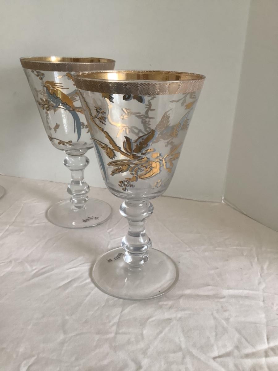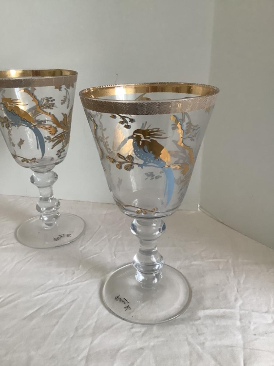 F519 Blue and Gold Bird Goblets by Patina Vic