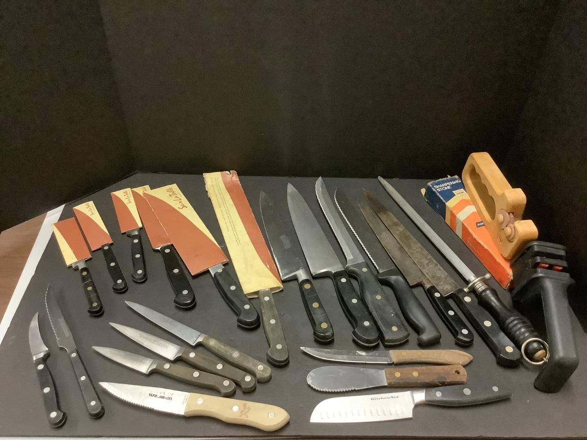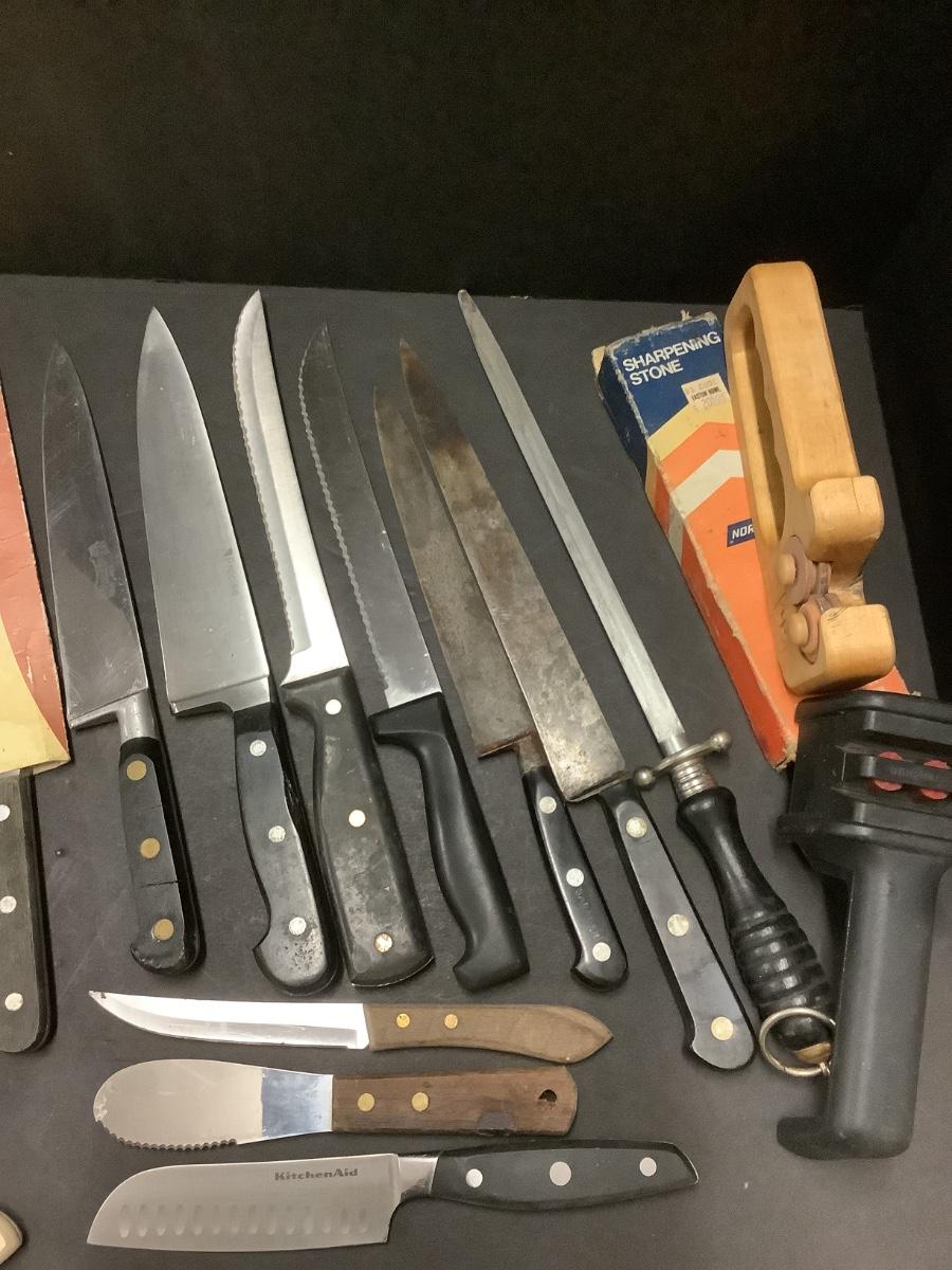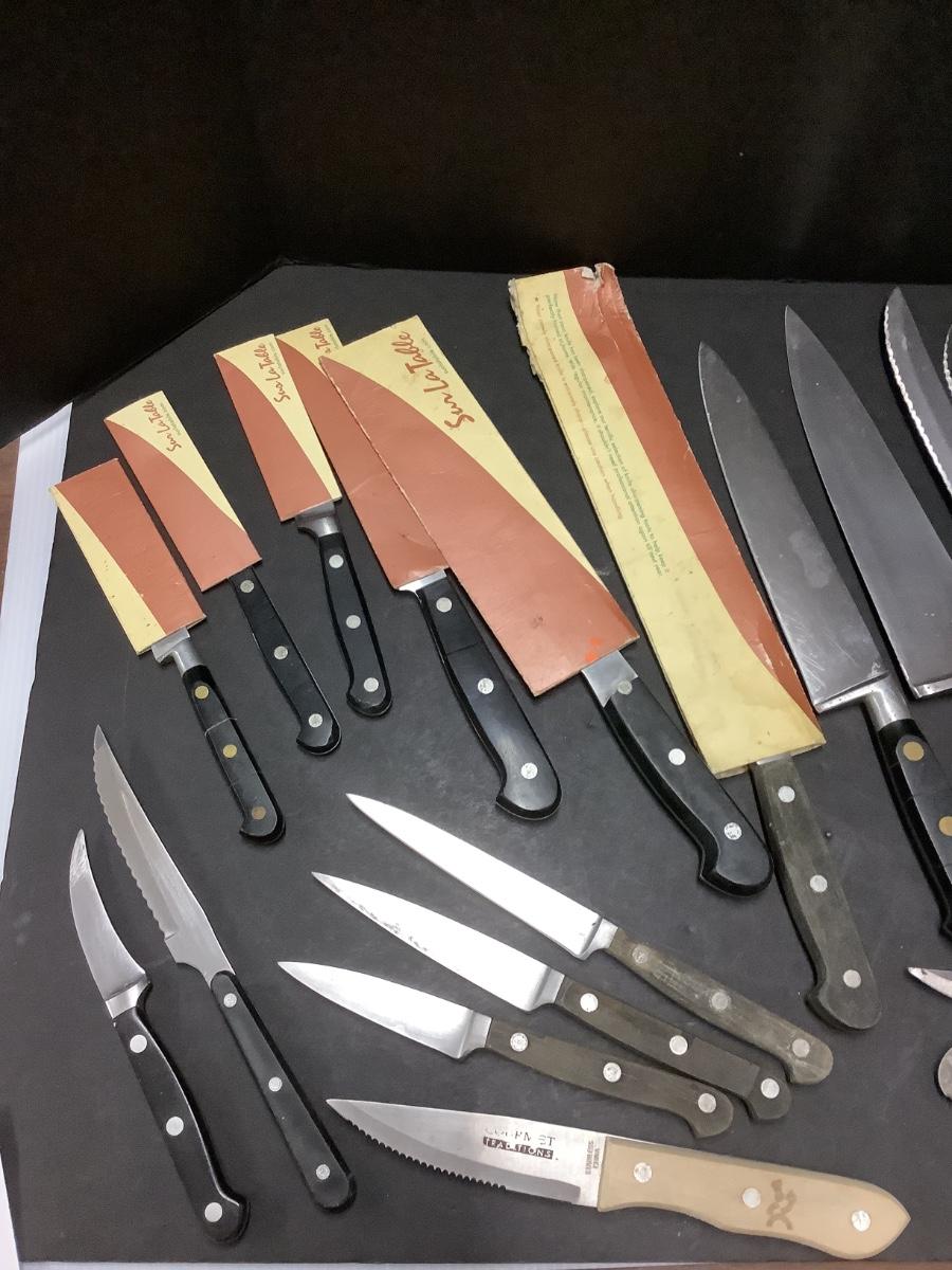 F520 Lot of Knives ( Sabatier, Kitchen Aid, Surlatable, Hoffritz )