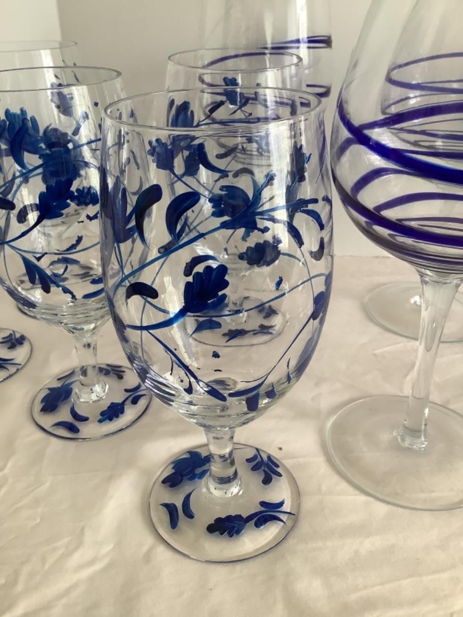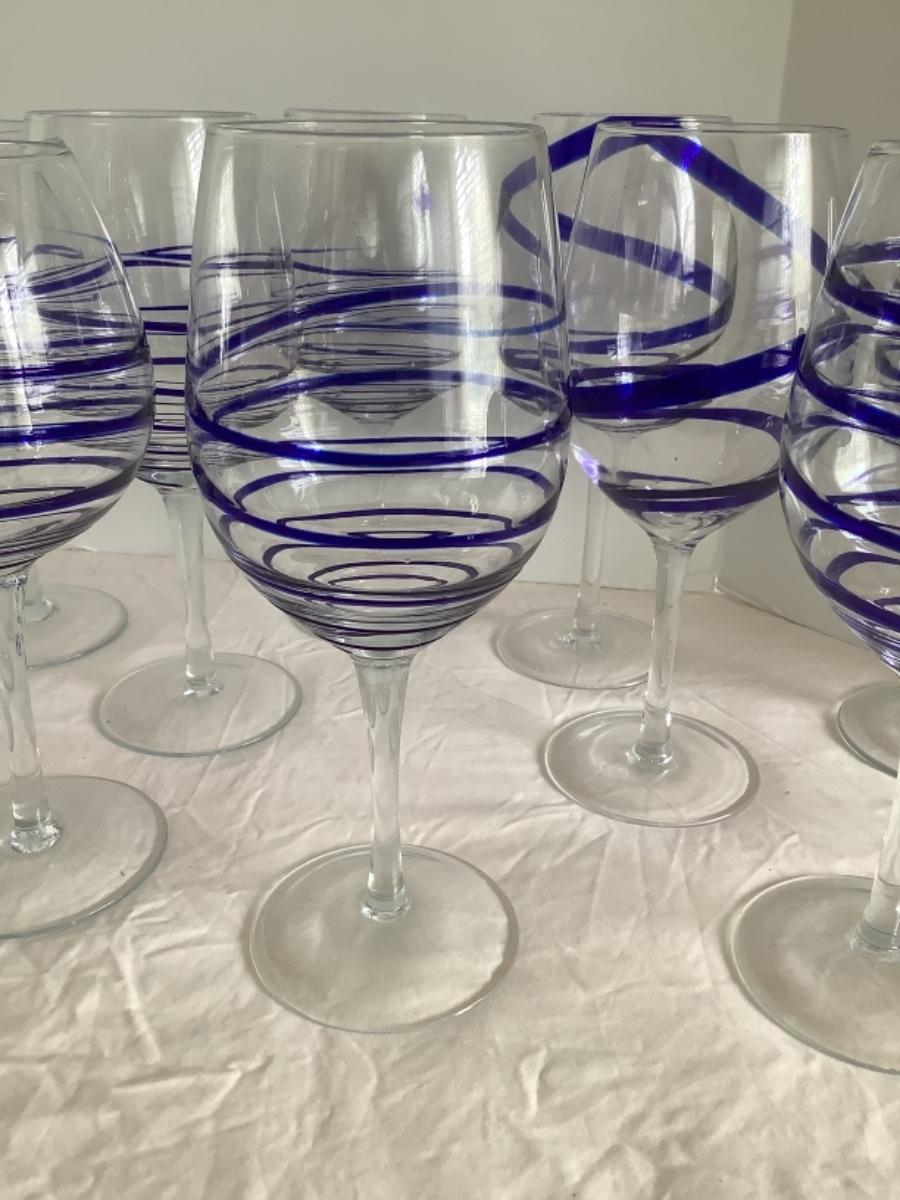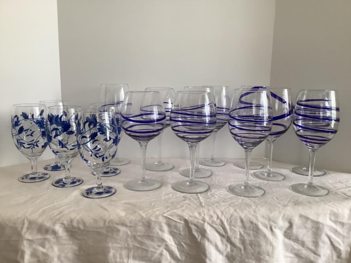 F521 Set of 16 Blue and Clear Glass Wine and Icetea Goblets