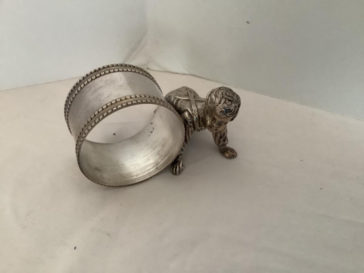 F529 Antique Silverplated Boy Crawling Napkin Ring