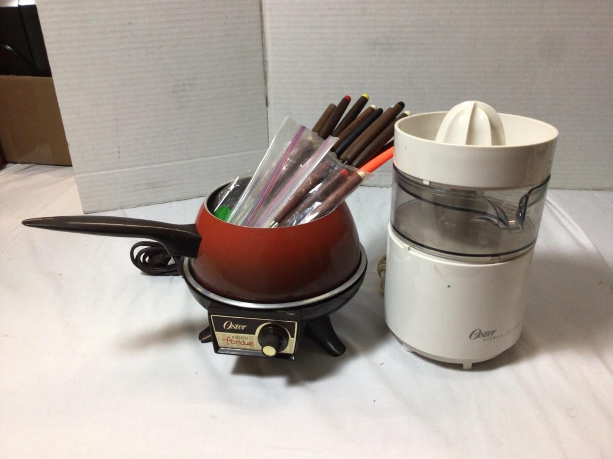 Oster Controlled Heat Fonduing Pot, with fondue forks.