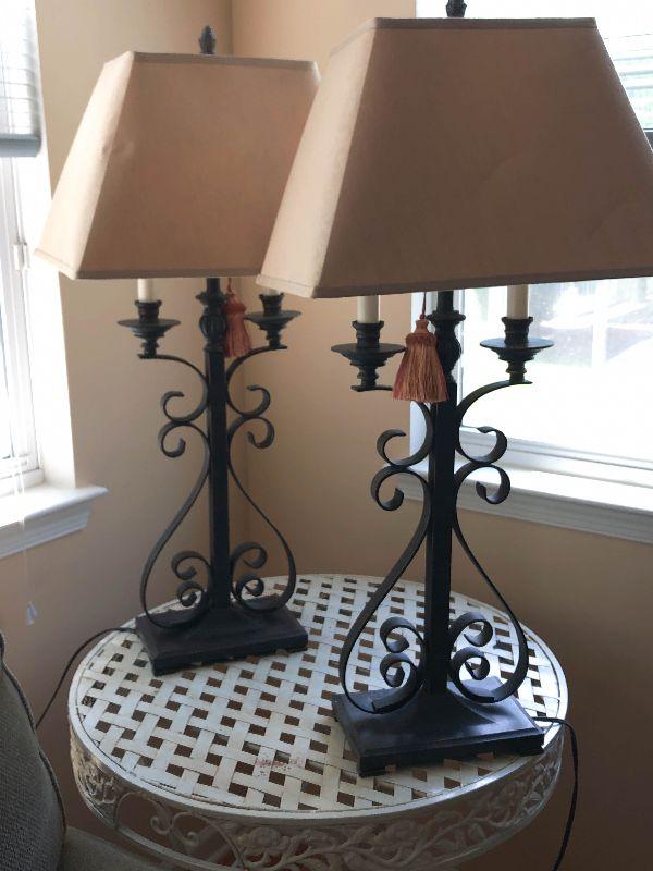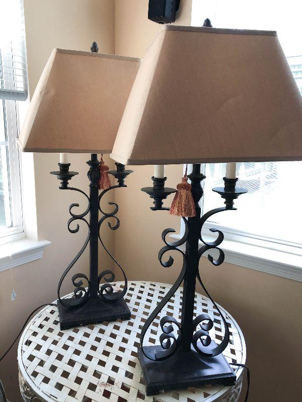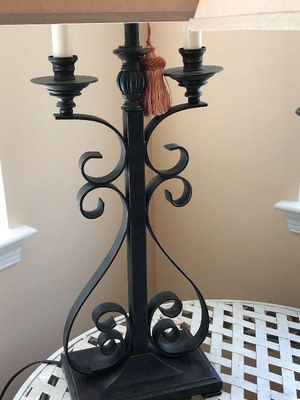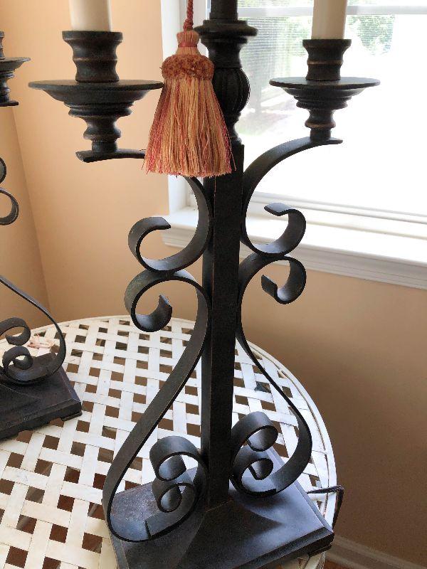 With the look of candlesticks, these one bulb lights have and antique feel. Includes recetangle lampshades.
