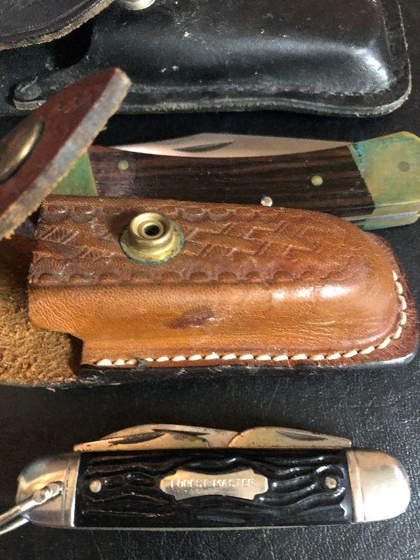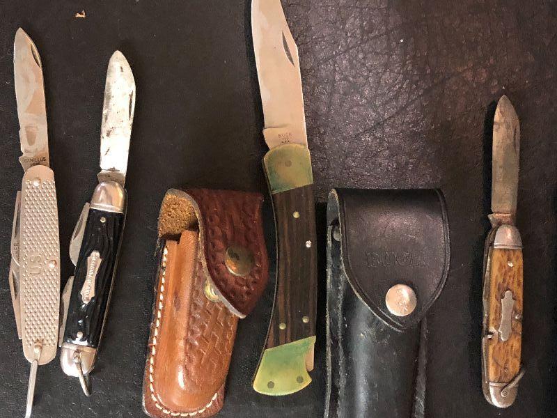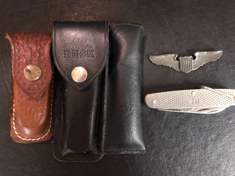 F61: Pocket Knives: Camillus 1985, Buck 110, Forest Master Colonial and Sterling Pilot Wings