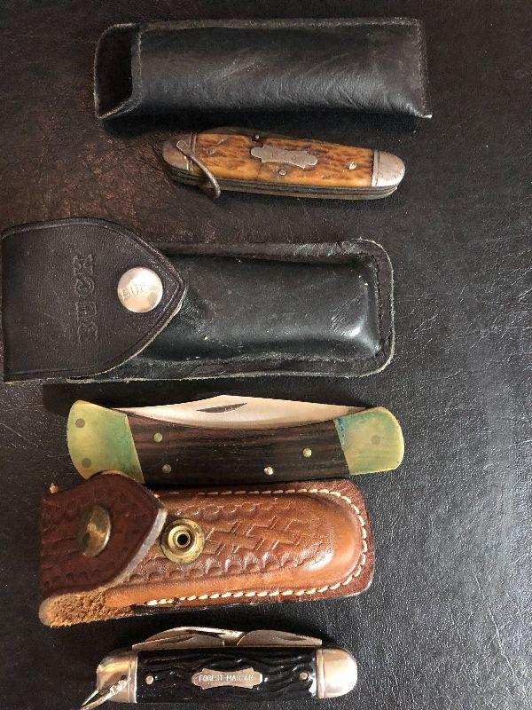 F61: Pocket Knives:  Camillus 1985, Buck 110, Forest Master Colonial and Sterling Pilot Wings