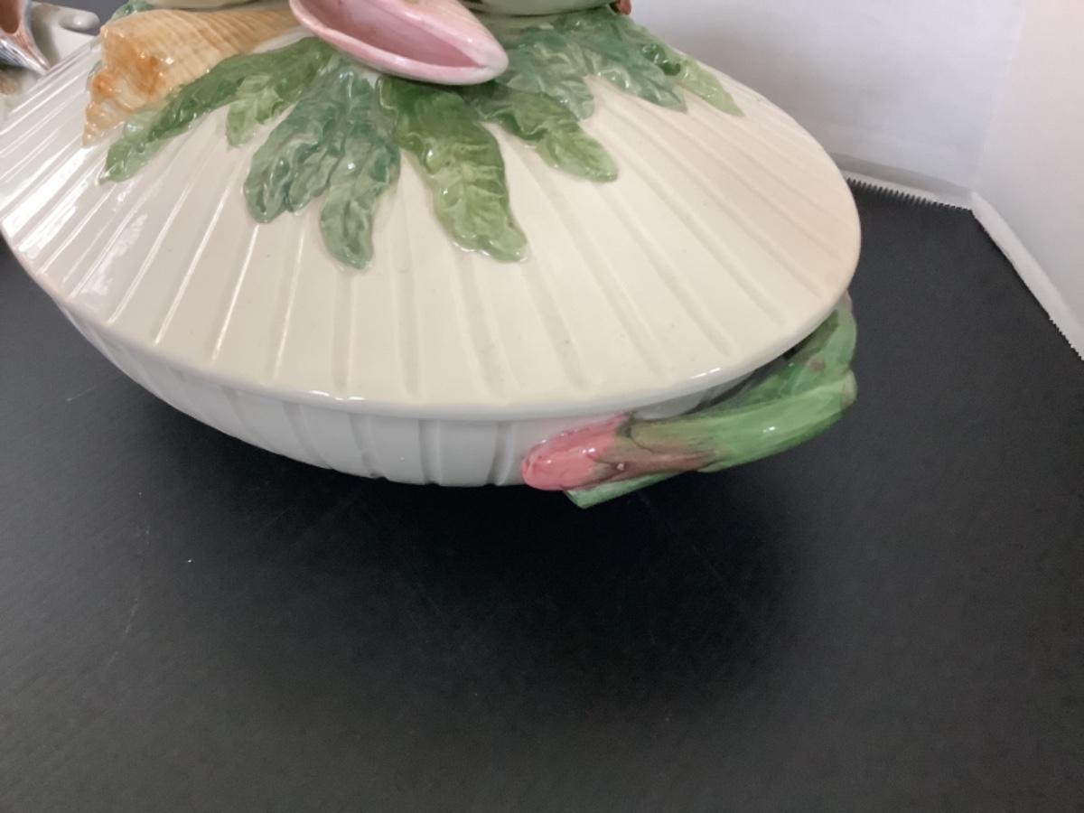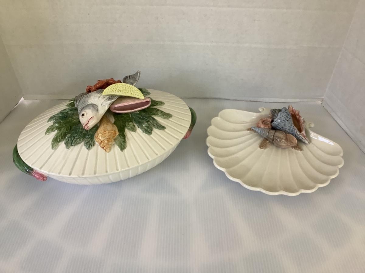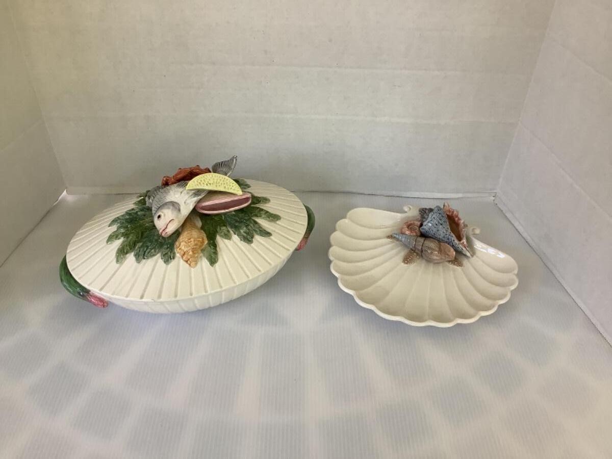 F634 Fitz & Floyd Oval Covered Vegetable Bowl and Shell Plate