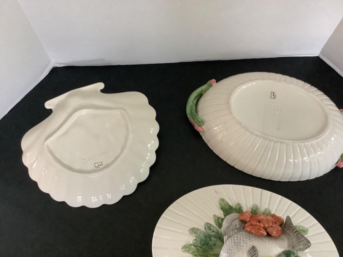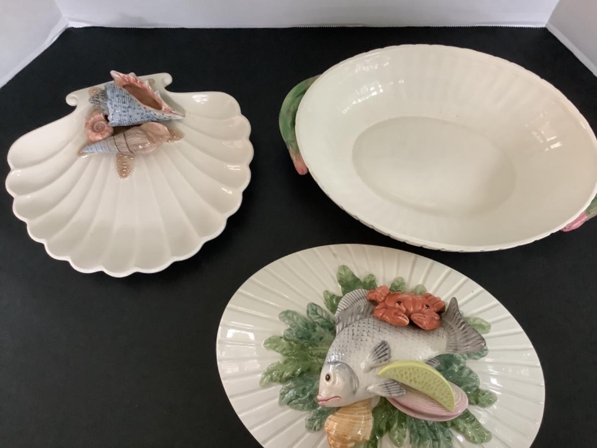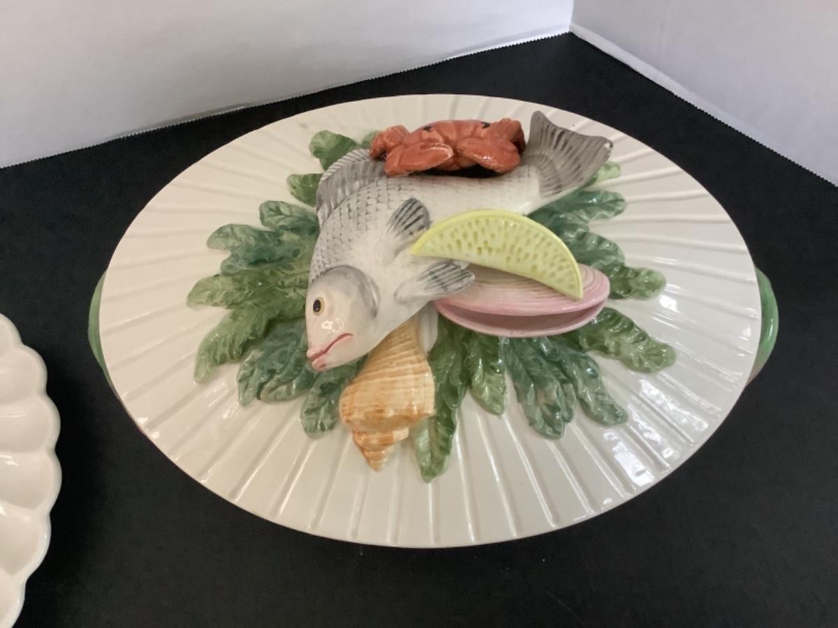 F634 Fitz & Floyd Oval Covered Vegetable Bowl and Shell Plate