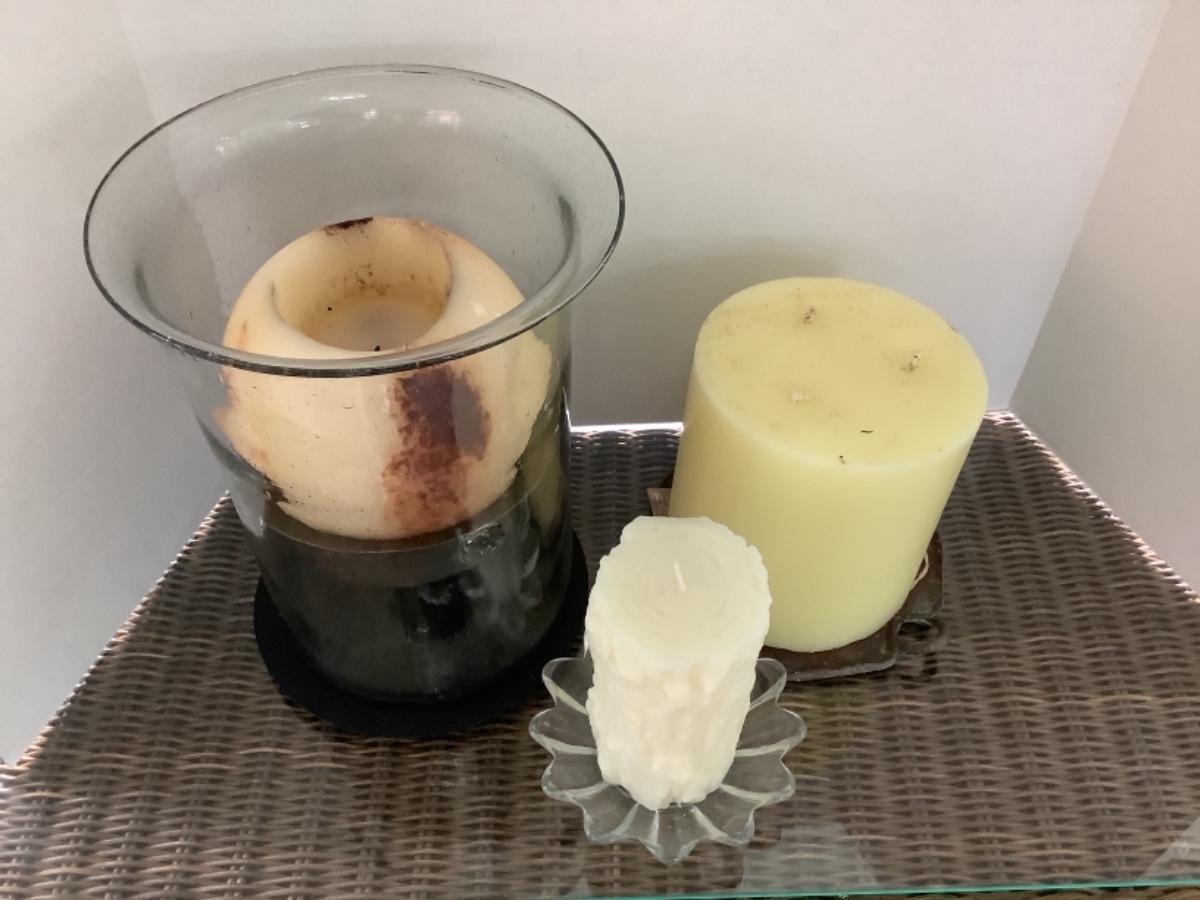 Large glass candle holder with additional candles